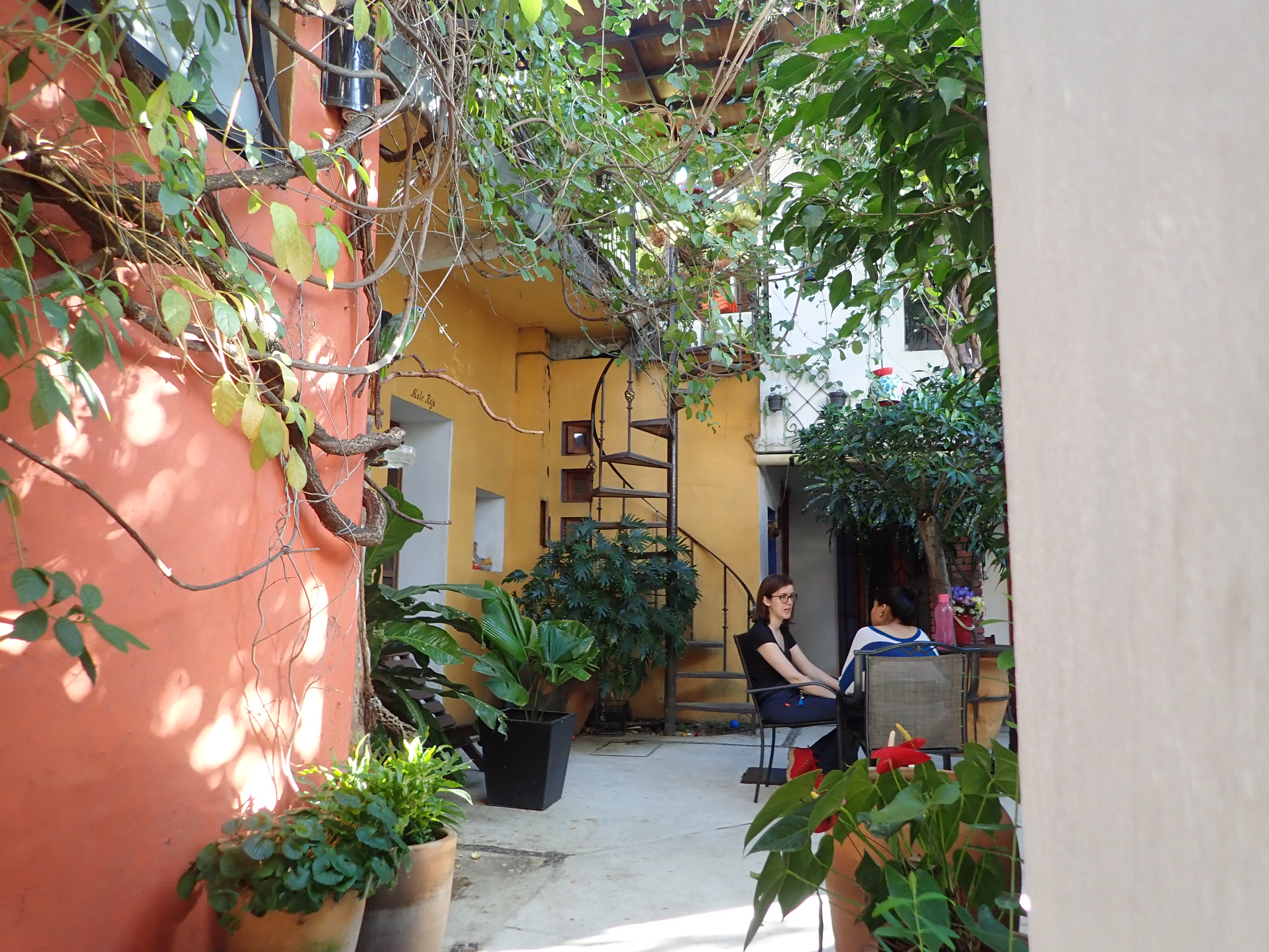 Nous avons suivi des cours pendant une semaine à la Spanish Immersion School à Oaxaca au Mexique. C’est lors de cette semaine que nous avons fait des progrès vraiment notables. Nous avons choisi cette école car la base de l’apprentissage se fait par des cours particuliers, nous pensons ainsi que les résultats sont bien plus rapides. Les leçons étaient parfaitement adaptées à notre niveau et les professeurs étaient capables après le premier cours de connaitre nos erreurs récurrentes et points faibles. Un autre plus, chaque journée de cours était divisée entre deux professeurs avec des styles très différents, ce qui a empêché que nous nous habituions à un seul interlocuteur. Nous ne nous sentions pas du tout comme à l’école. Il est possible de choisir le lieu des classes, dans un parc, en se baladant, au musée, etc. Au sein de l’école l’environnement est idyllique et les cours se déroulent dans le jardin avec les tortues, les oiseaux et le perroquet.
