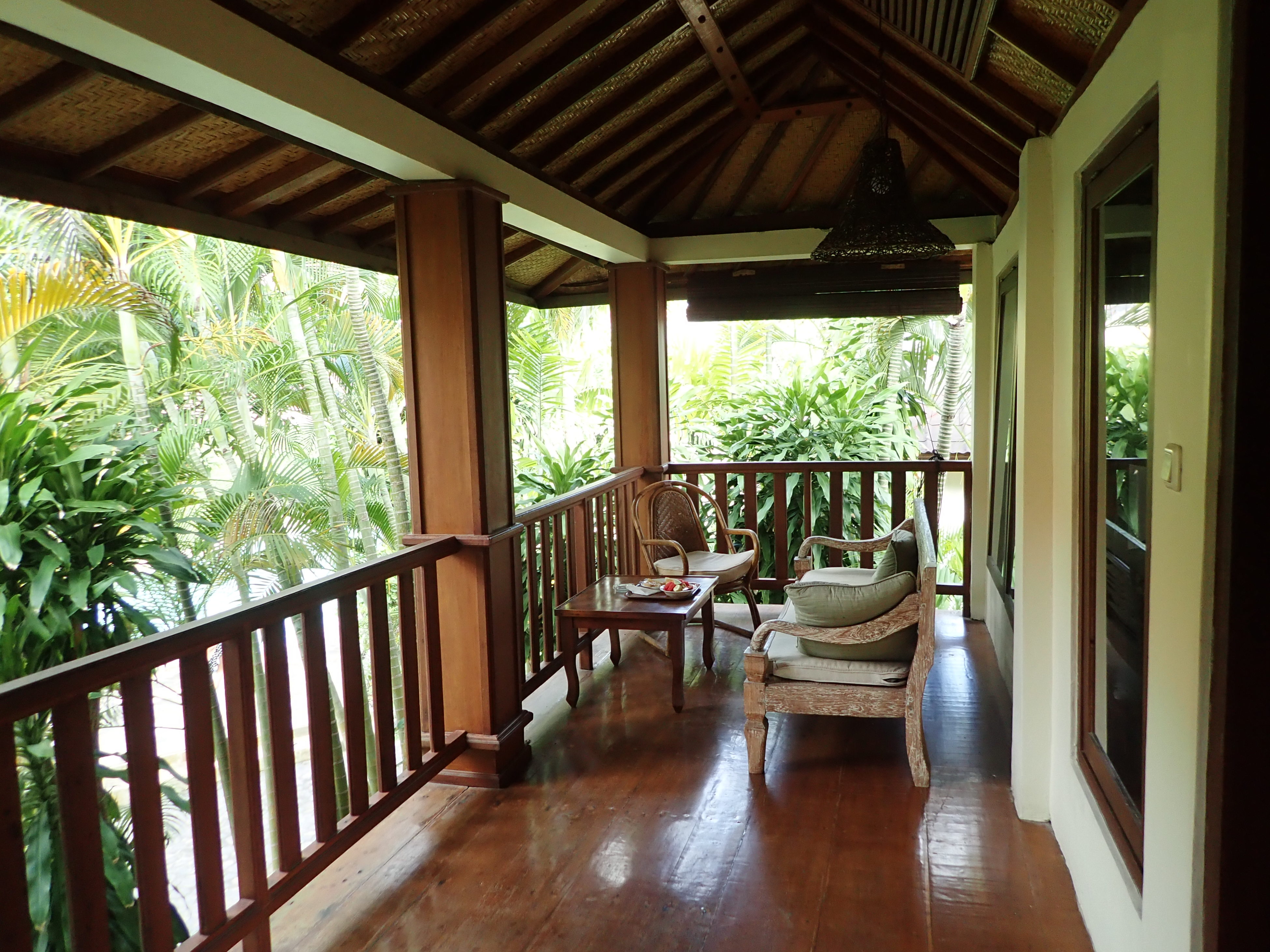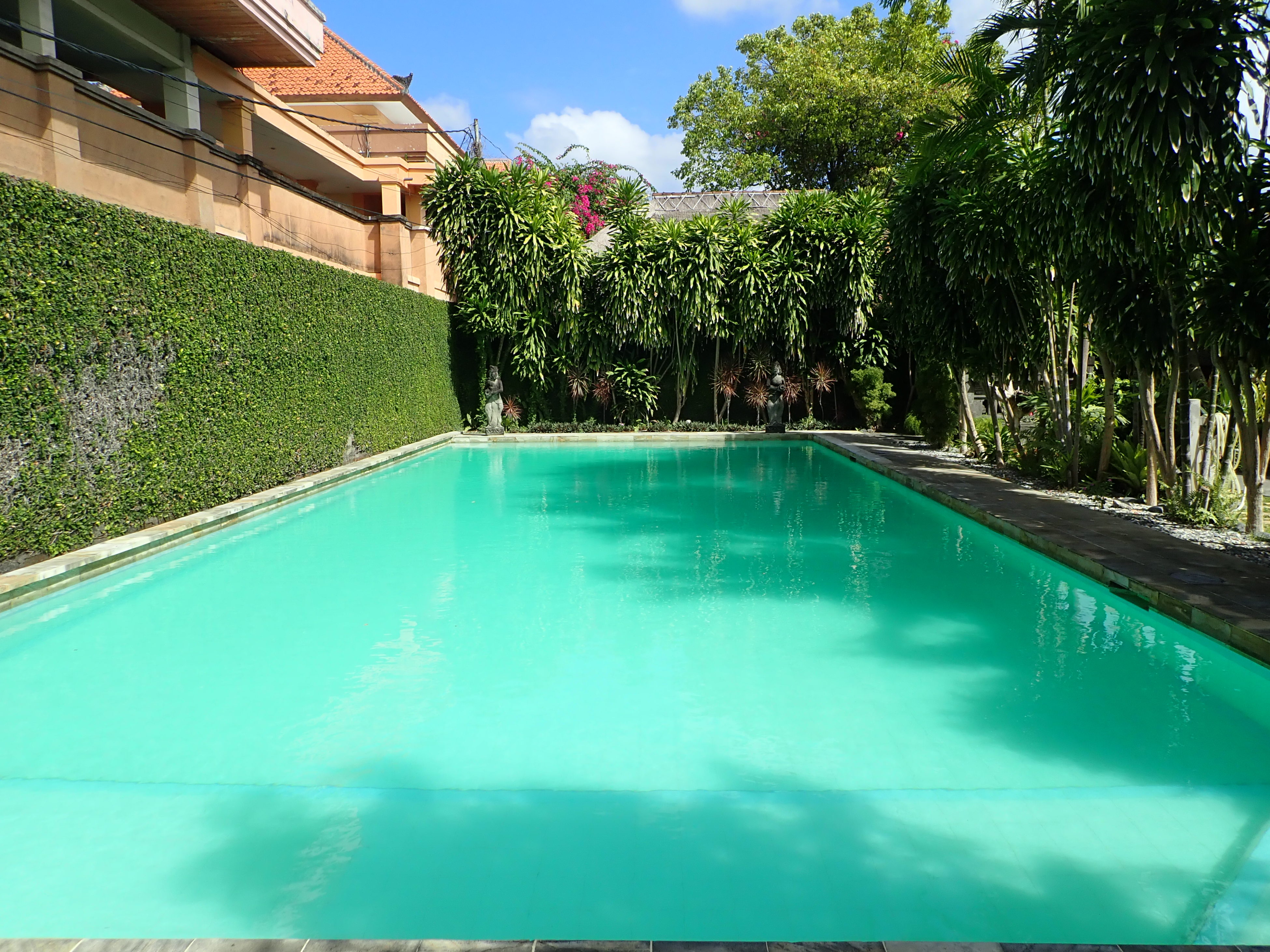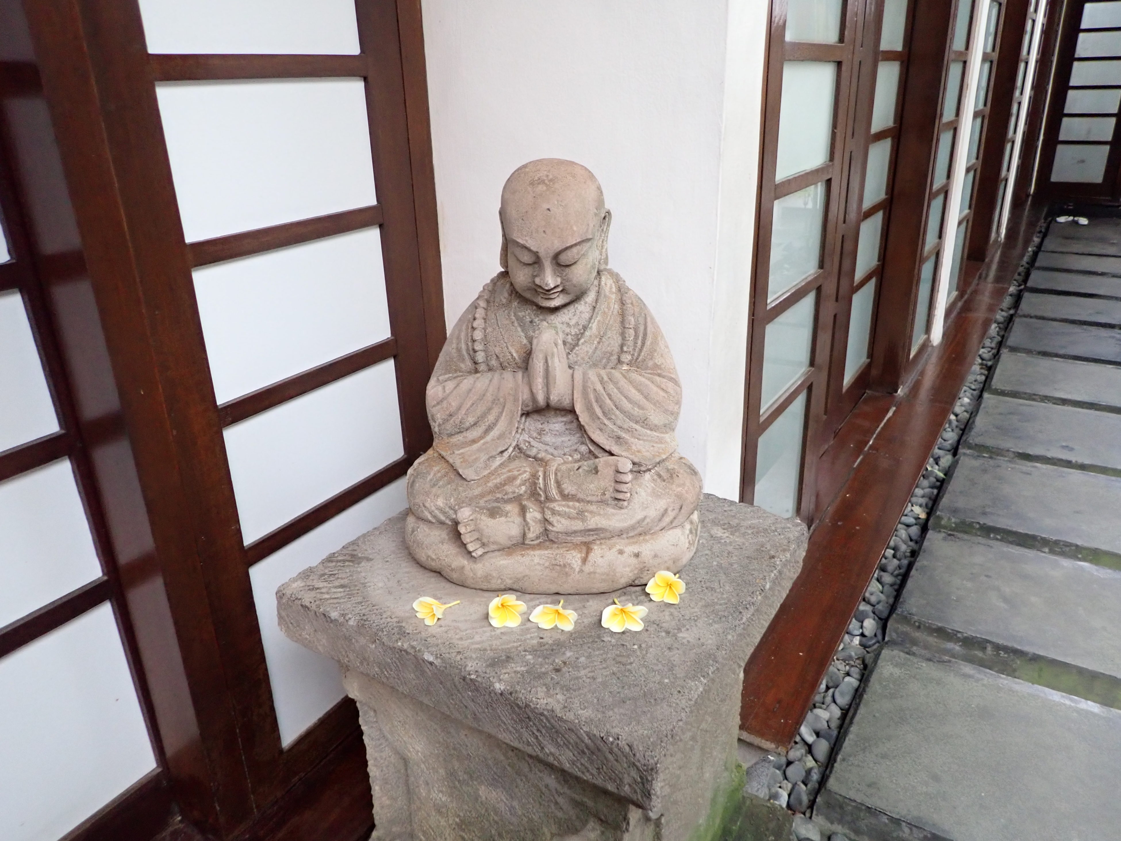 First of all, we loved our stay in this area at the Raja Gardens Hotel. It is a perfect compromise between a luxury hotel and a more traditional bungalow. The garden (with a large pool) is beautiful and relaxing. It is incredibly quiet and yet so close to the entertainment in the area. Moreover, the beach is only a few steps away. Our room had a four poster bed and a balcony with wooden furniture, typical of Balinese interiors. This hotel, which has been in operation for about 40 years, reflects the accommodation style before the tourism boom led to the destruction of traditional gardens in favor of more housing. Consequently, this is one of the last hotel in the area with a large Balinese garden.