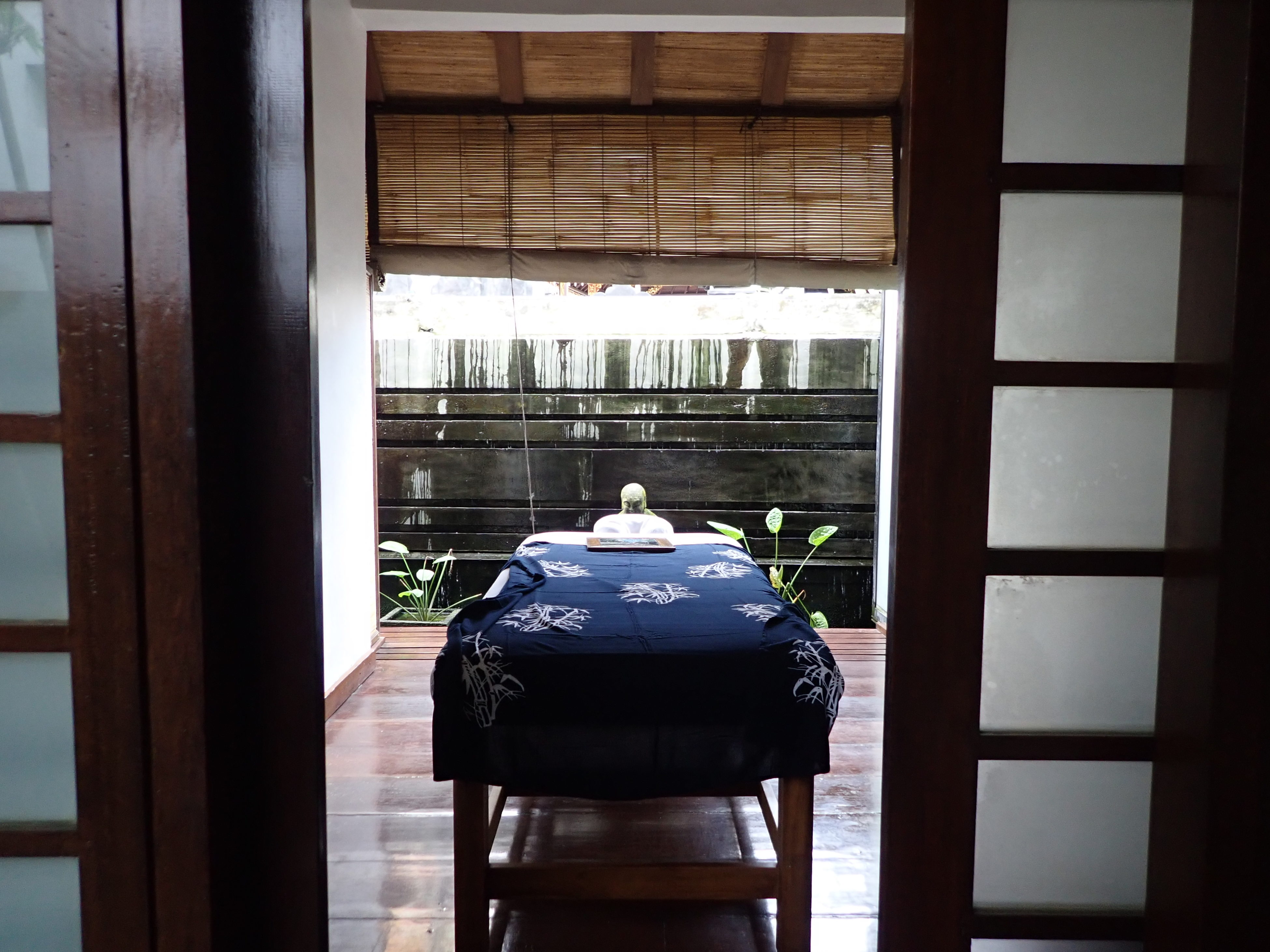 The Jari Menari Massage we received was a fusion session, blending Traditional Indonesian Massage with Swedish, Thai, Esalen and Breema Shiatsu techniques. What made the session so different was the way the whole body is addressed at one time, with long flowing strokes, and an intuitive sense that kept going back to the tension in the neck, back and shoulders again and again. We decided to have the “The Perfect Massage” which lasts 90 minutes. Afterwards we were deeply relaxed, rejuvenated and ready to explore once again. The staff was very friendly and professional. The reception, massage and changing rooms are very well decorated and super clean. You will be given a sarong and, once changed, your personal belongings are stored in a secured locker. Before and after the massage, you can shower and enjoy the pleasant soaps. In addition, you can choose to have your massage alone or with your loved one in the double rooms. Both options offer big, lovely rooms, open to fresh air, natural light as well as a waterfall and music in the background.