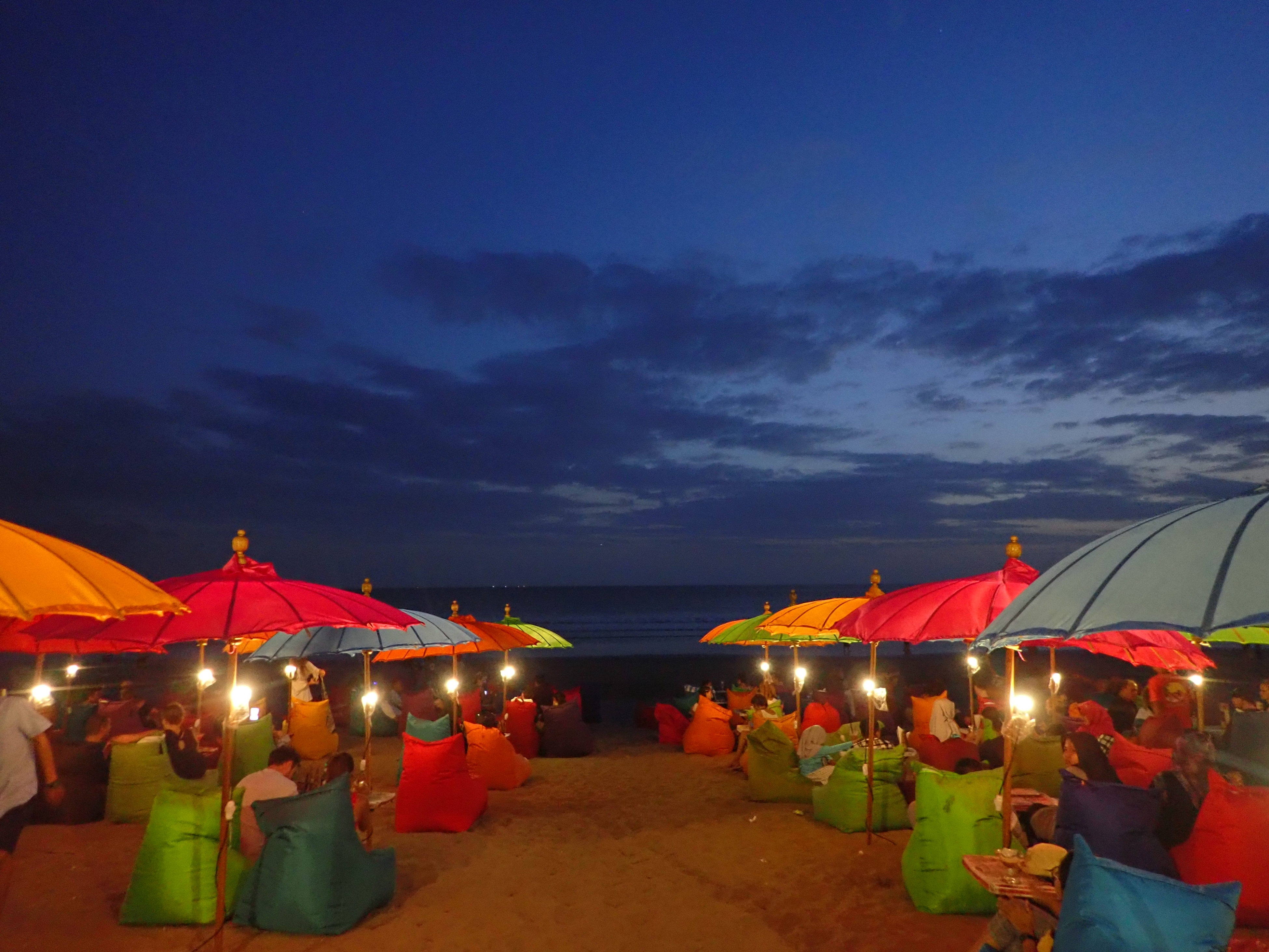 On the beach bordering Kuta, Seminyak and Canggu, the tradition for locals, expats and tourists alike is to head over there late afternoon and watch the sunset. This can be enjoyed feet in the sand with a drink or a dish from one of the many affordable small restaurants on the beach. However, be careful not to have one of the many dogs lying around urinating on your back!