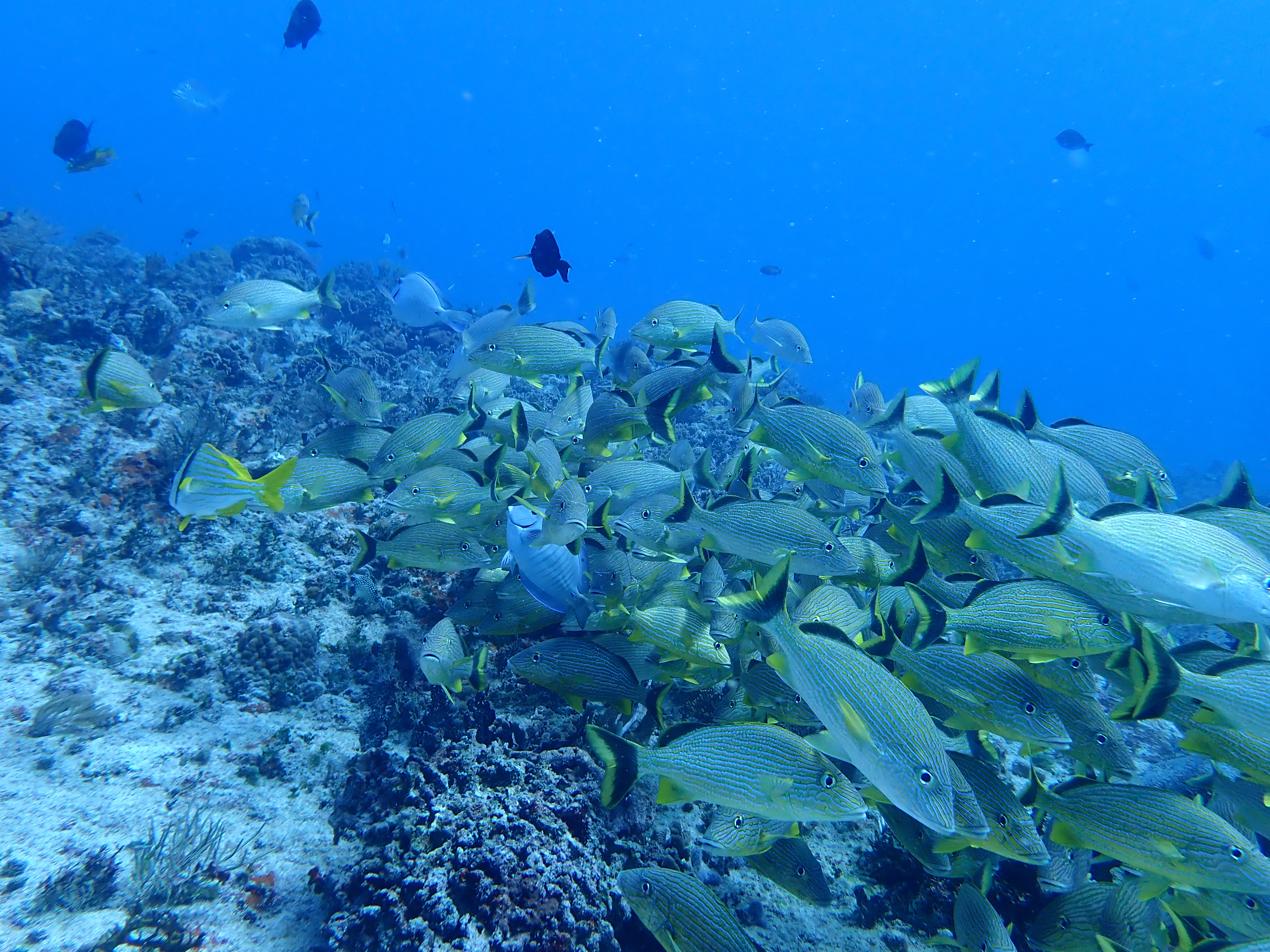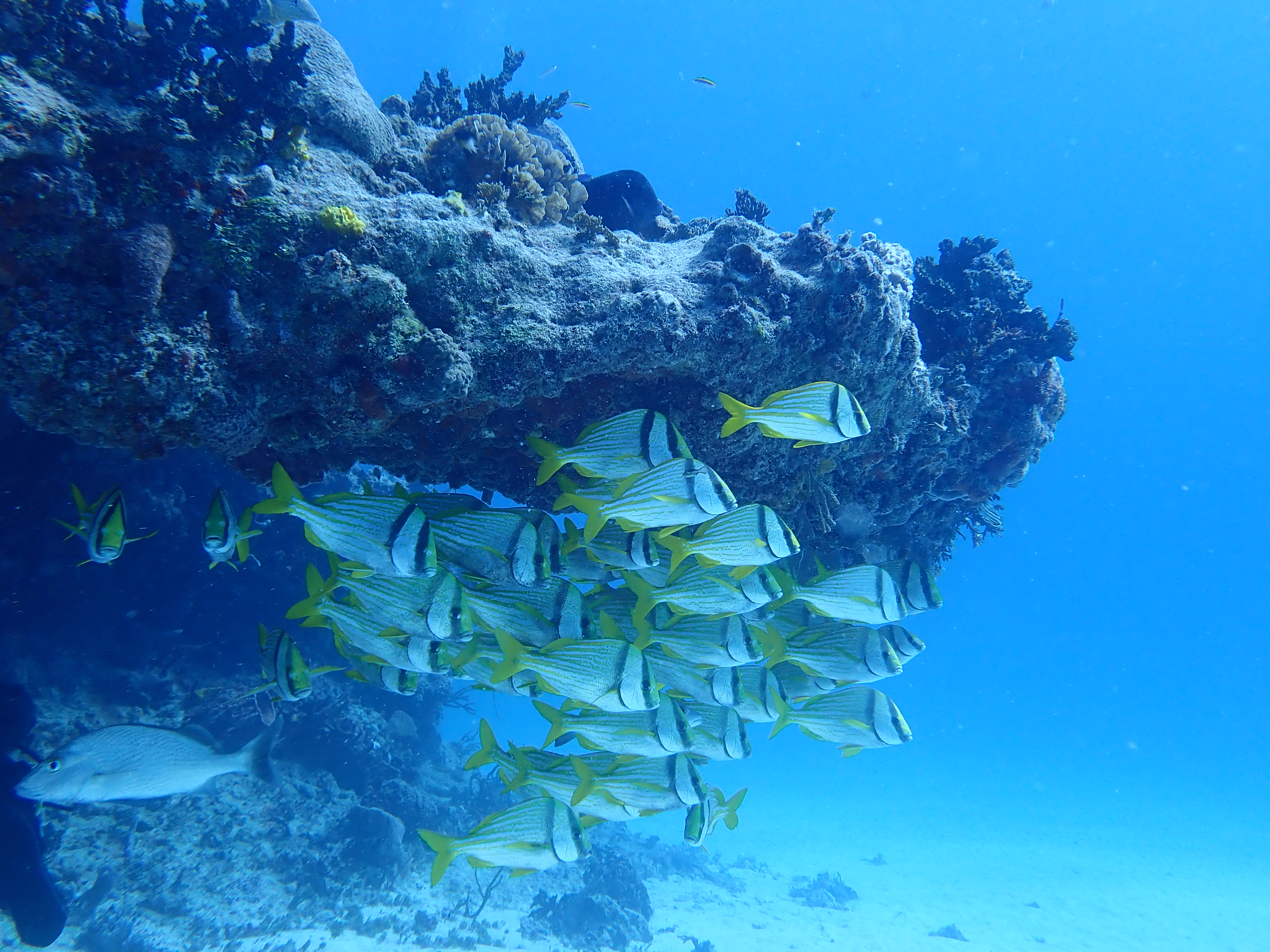 The Mesoamerican Coral Reef stretches on more than 1,000 km from the Caribbean side of Mexico to Honduras. It is the second largest barrier reef in the world after Australia. It seemed like a wonderful place to take our PADI Open Water certification. Our first encounter with the barrier was off the coast of Belize (where we had a great glimpse with a mask and a snorkel). However we preferred to settle for our week of course in Mexico which is a more affordable country that we love.