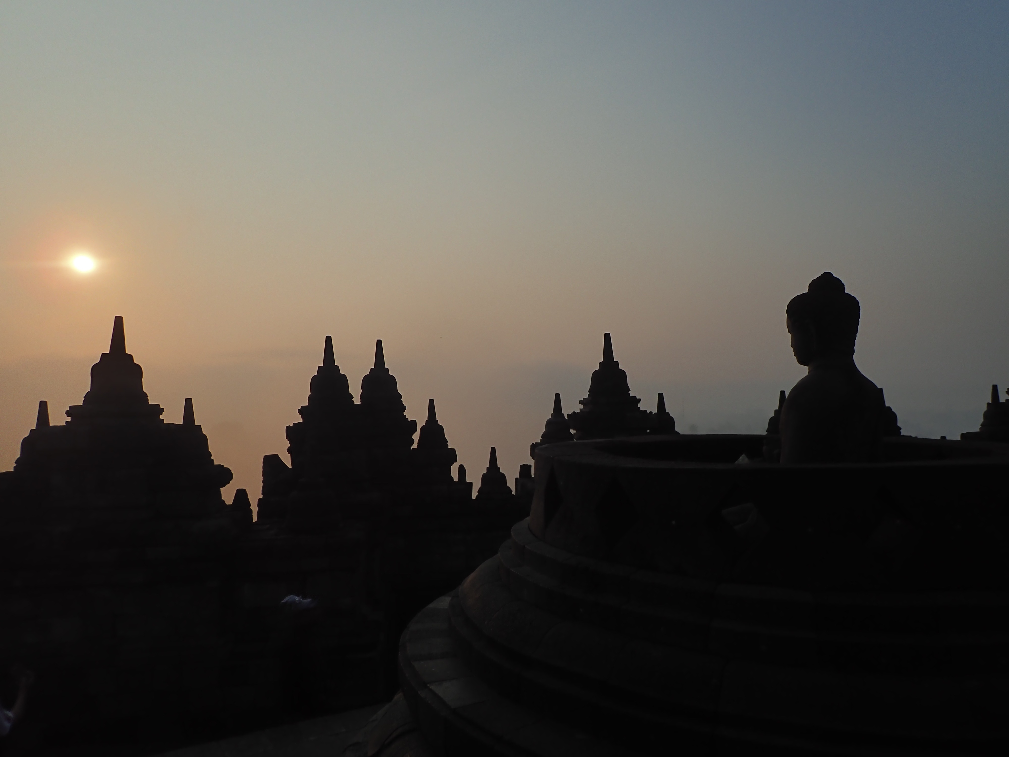 After a very early morning we went to Borobudur to admire the sunrise. Unfortunately we weren’t able to enter until dawn. Apparently you would have to join an excursion from a travel agency for this, for very high prices! Being there at dawn still allowed us to start our visit with very few tourists and to take advantage of a beautiful atmosphere for photos.