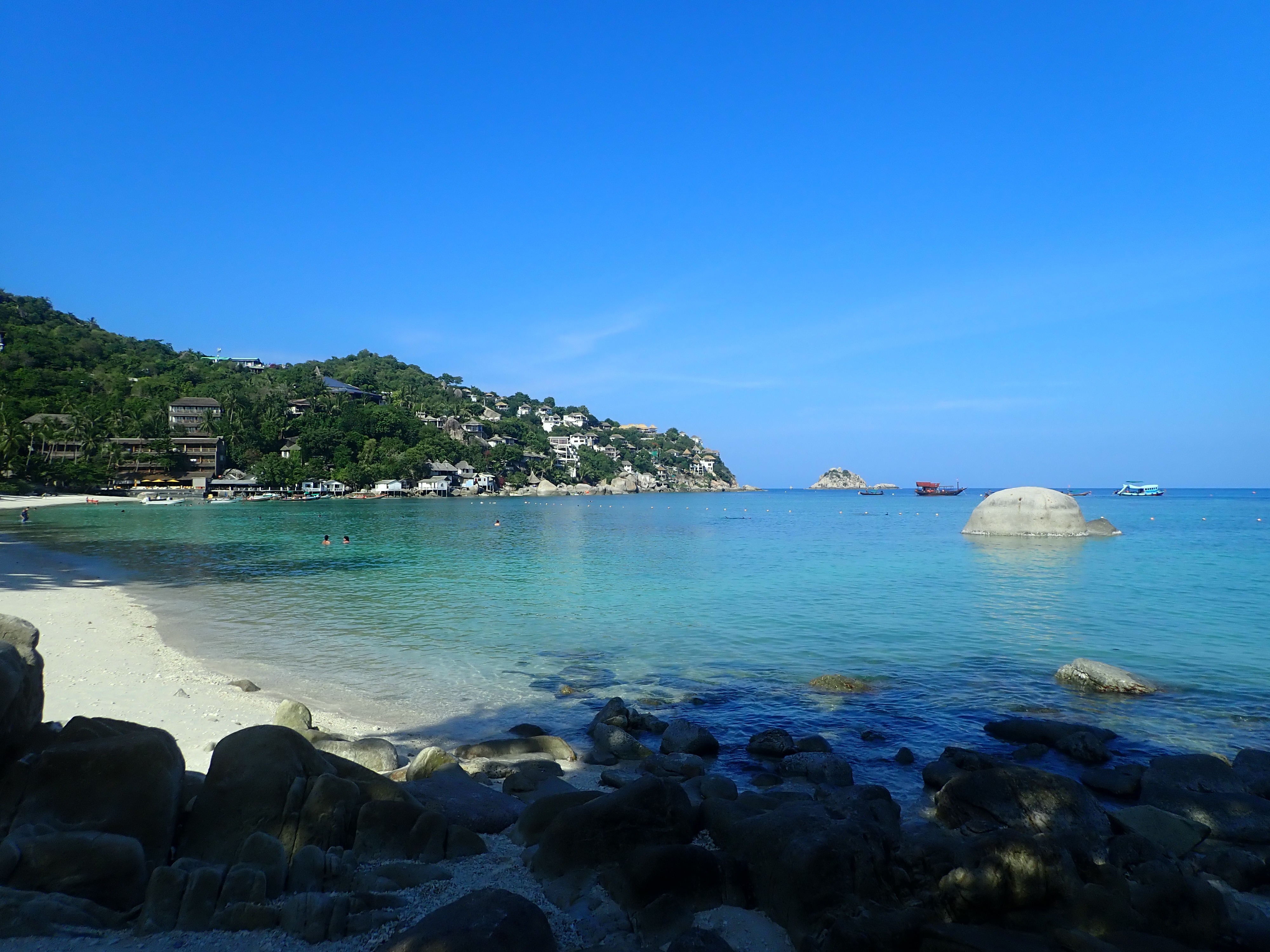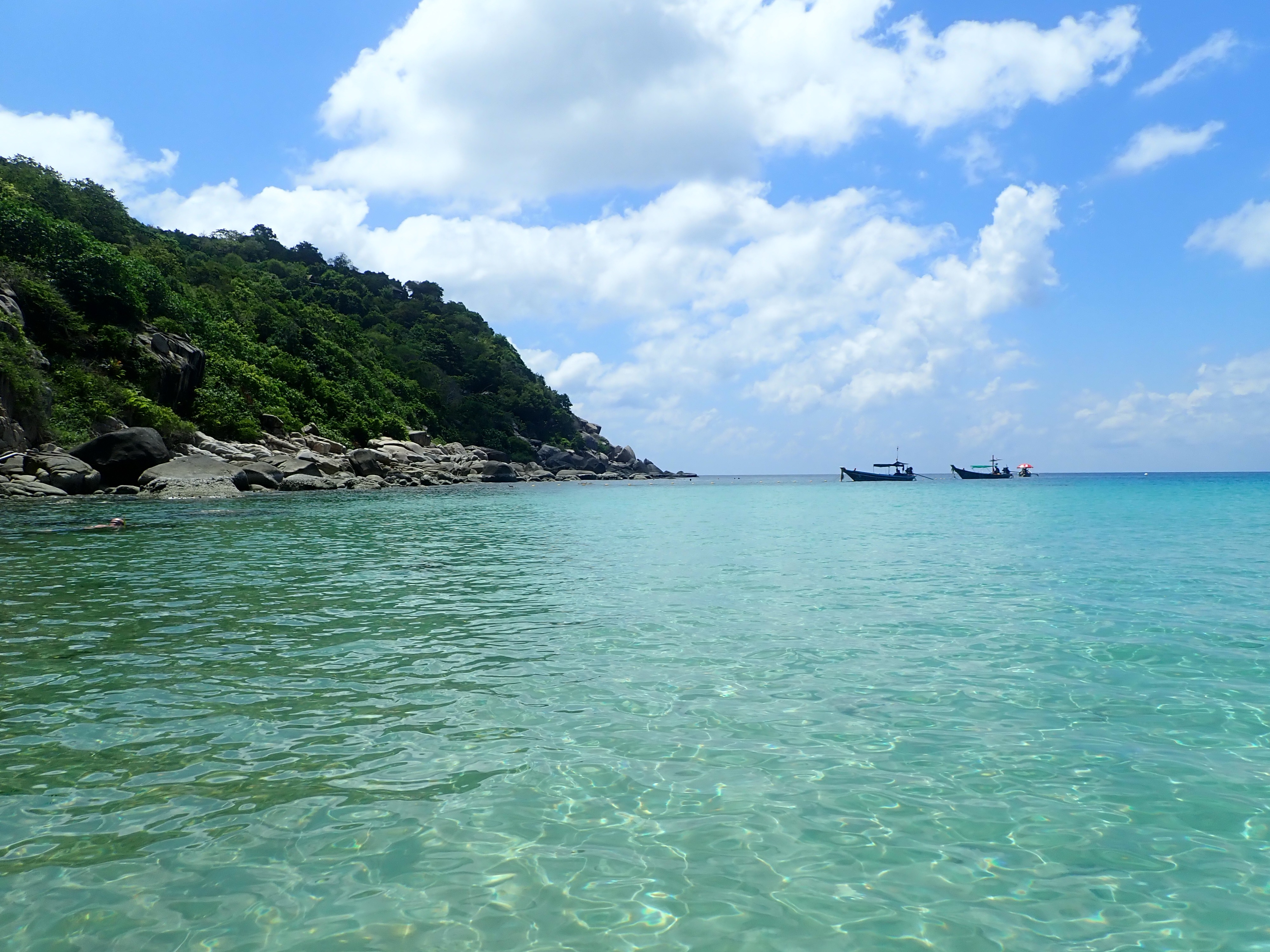 Accessible by foot from Mae Haad, the walk will take you past the hotels, the jungle and the seaside. This is a private beach and it costs 100 baht per person for access. There is not a lot of coral to observe but a very pretty shaded and natural bay. Coming from Mae Haad we passed by Charm Churee Villa Boutique Resort Ko Tao and the beautiful Jansom bay. This is another private beach where it takes 200 baht to enjoy the hotel beach and pool.