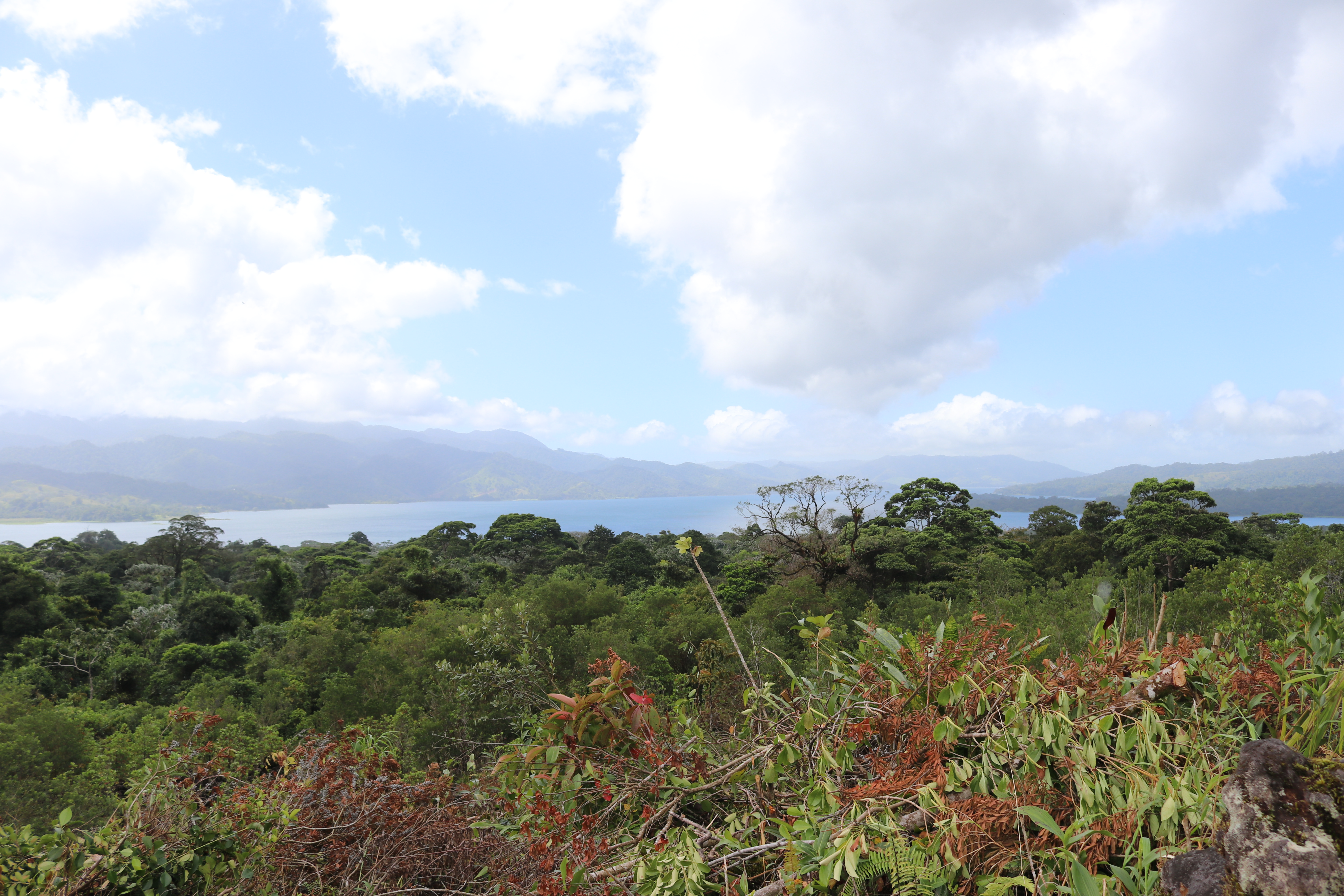 A very short route in distance but very long in time. Indeed, our next destination, the Arenal volcano Park is 25km as the crow flies but we had to get around the Arenal artificial lagoon. There are many unpaved roads from Monteverde and it is very slow. However, we have seen beautiful mountains and many birds (including toucans). Once past the mountain, we drove along the beautiful and very windy Arenal lagoon. We finally reached our accomodation at Ivan and Ivania.