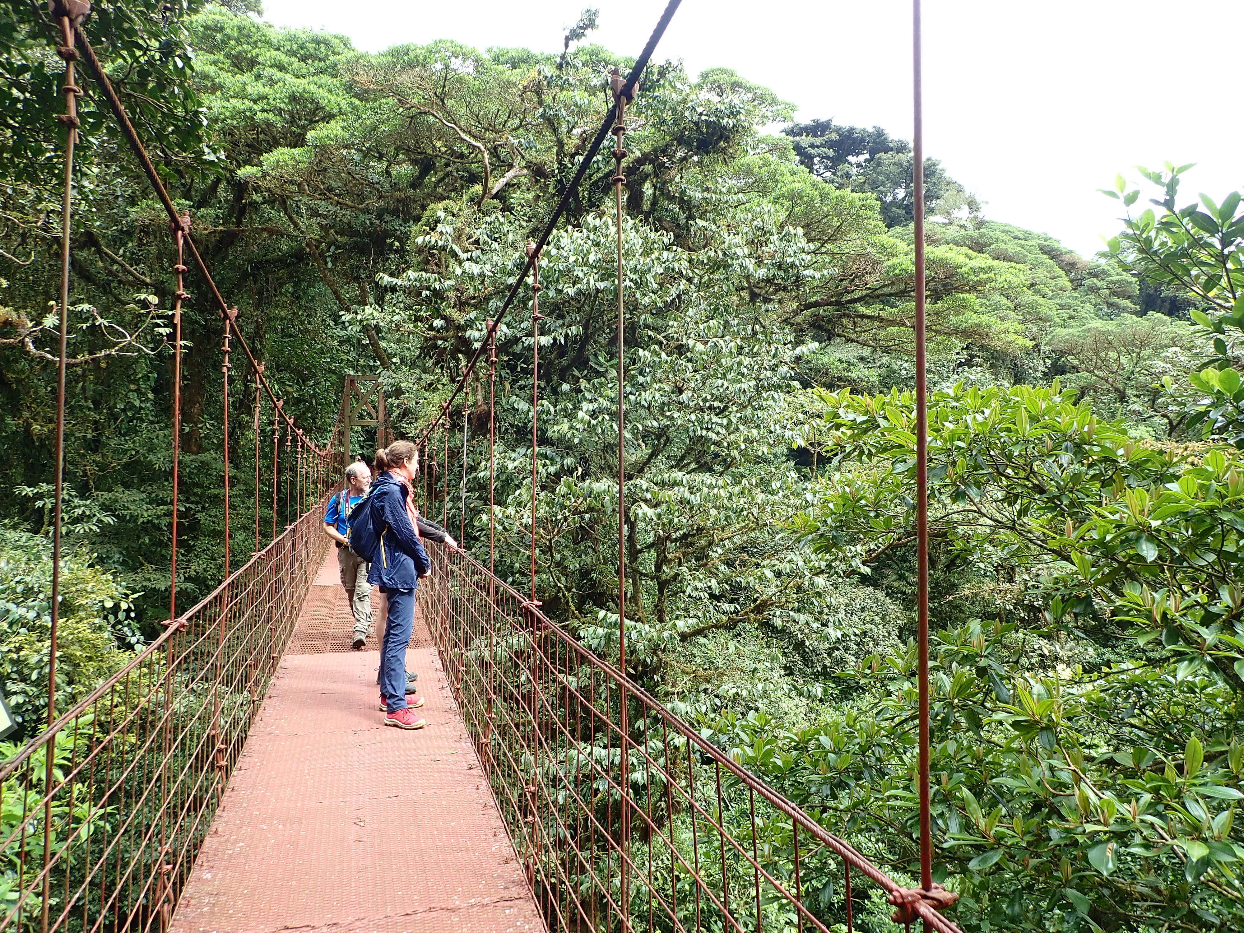 The main attraction of Monteverde is its biological reserve, also called the cloud forest. We visited it the day after our arrival. Plan to come early because the number of people in the park is limited to 160. We arrived at 8 am and had to wait until 9:30 am being 11th on the waiting list. We thought the park was opening at 8 am (as read in our guide) but it is now 7 am. The park is small but beautiful. We observed the lush and very dense nature as well as the animals and birds. We spent the day there and covered almost all 8 miles of well maintained trails. We have, among other things, reached the continental division point with a magnificent view of the Pacific Ocean on one side and clouds on the other side. It is said that a water drop falling on the east of the line will reach the Atlantic Ocean and a water drop falling on the west will join the Pacific Ocean. Finally, do not miss crossing the suspension bridge which will take you over trees and jungle.