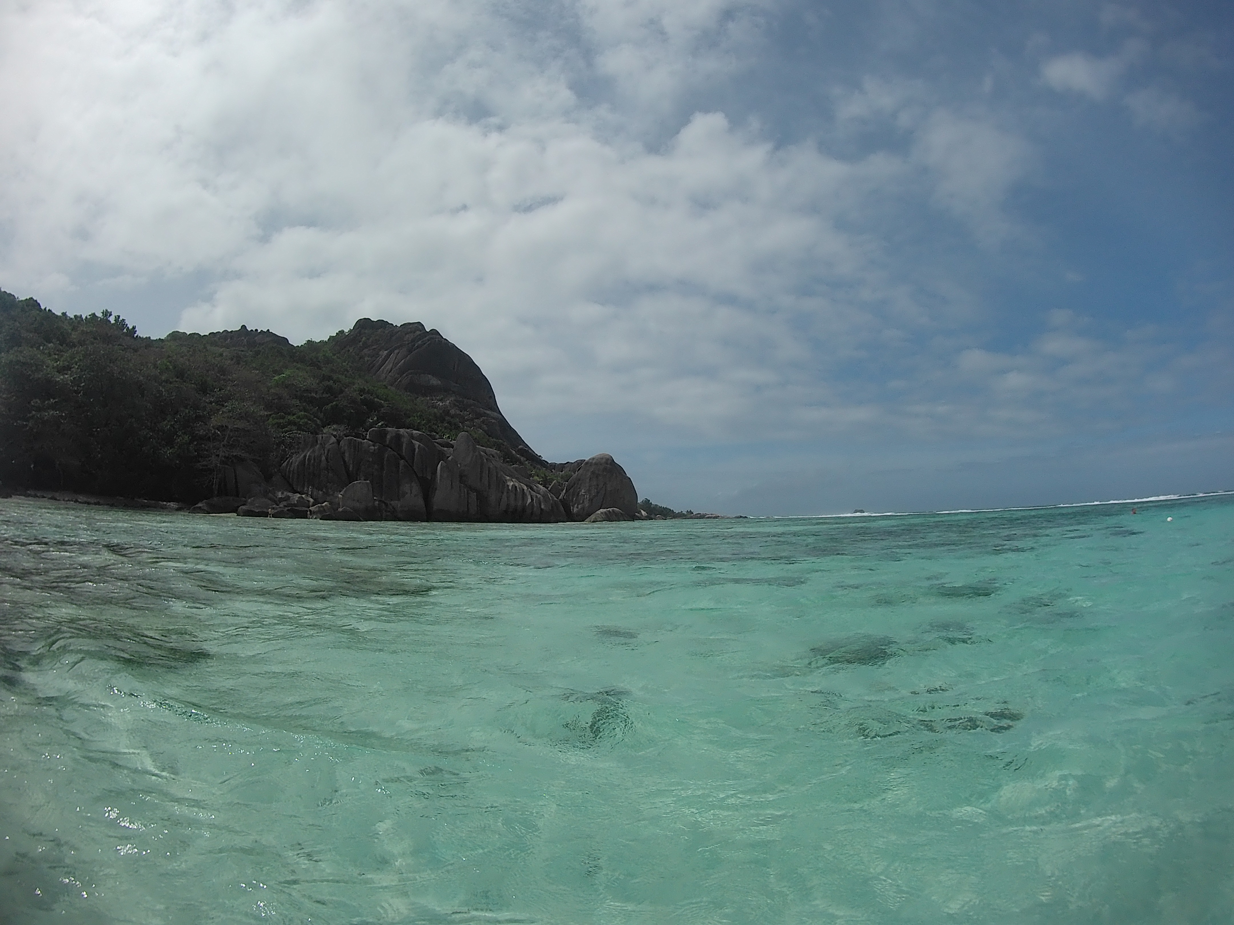 We were supposed to snorkel near the Saint-Pierre Island but, the conditions being bad, we did it off Praslin. The views on Praslin Island from the boat were stunning.