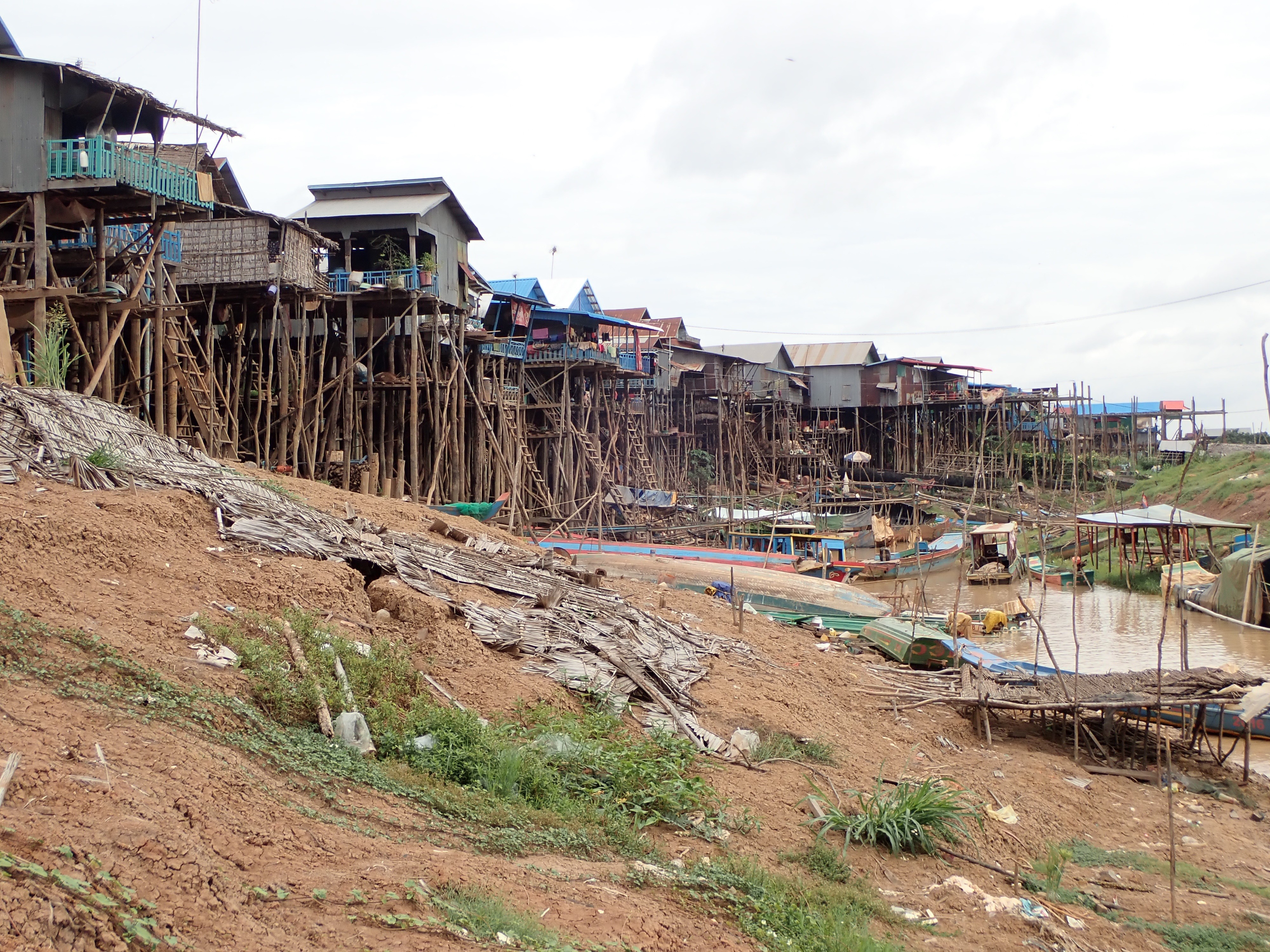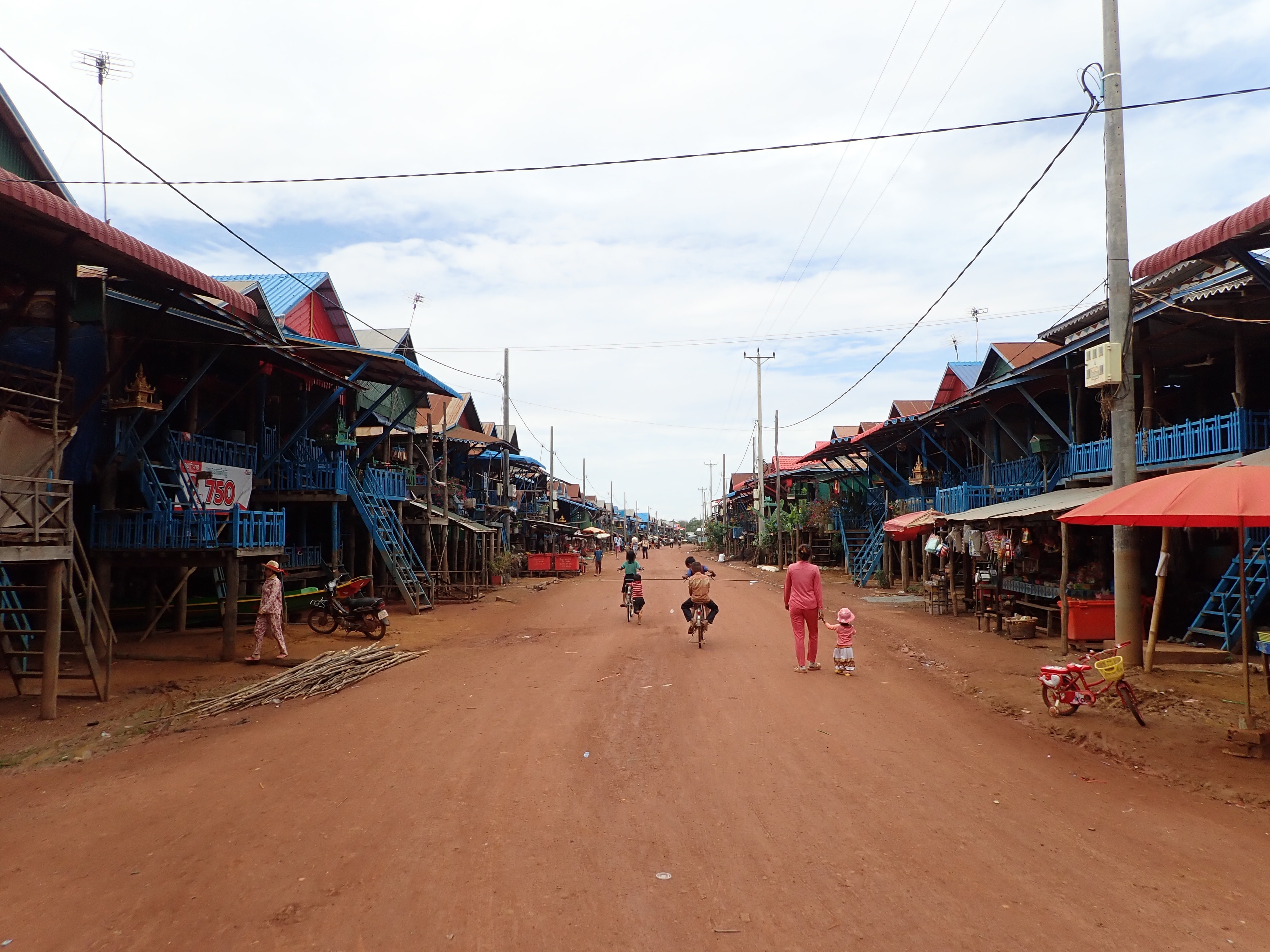 The inhabitants bravely adapted to the very difficult conditions. Water rises very high in this village by the lake and their means of transports are transformed during the rainy season. The boat are replacing the bikes because the water covers the whole village except for the small island of the temple.
