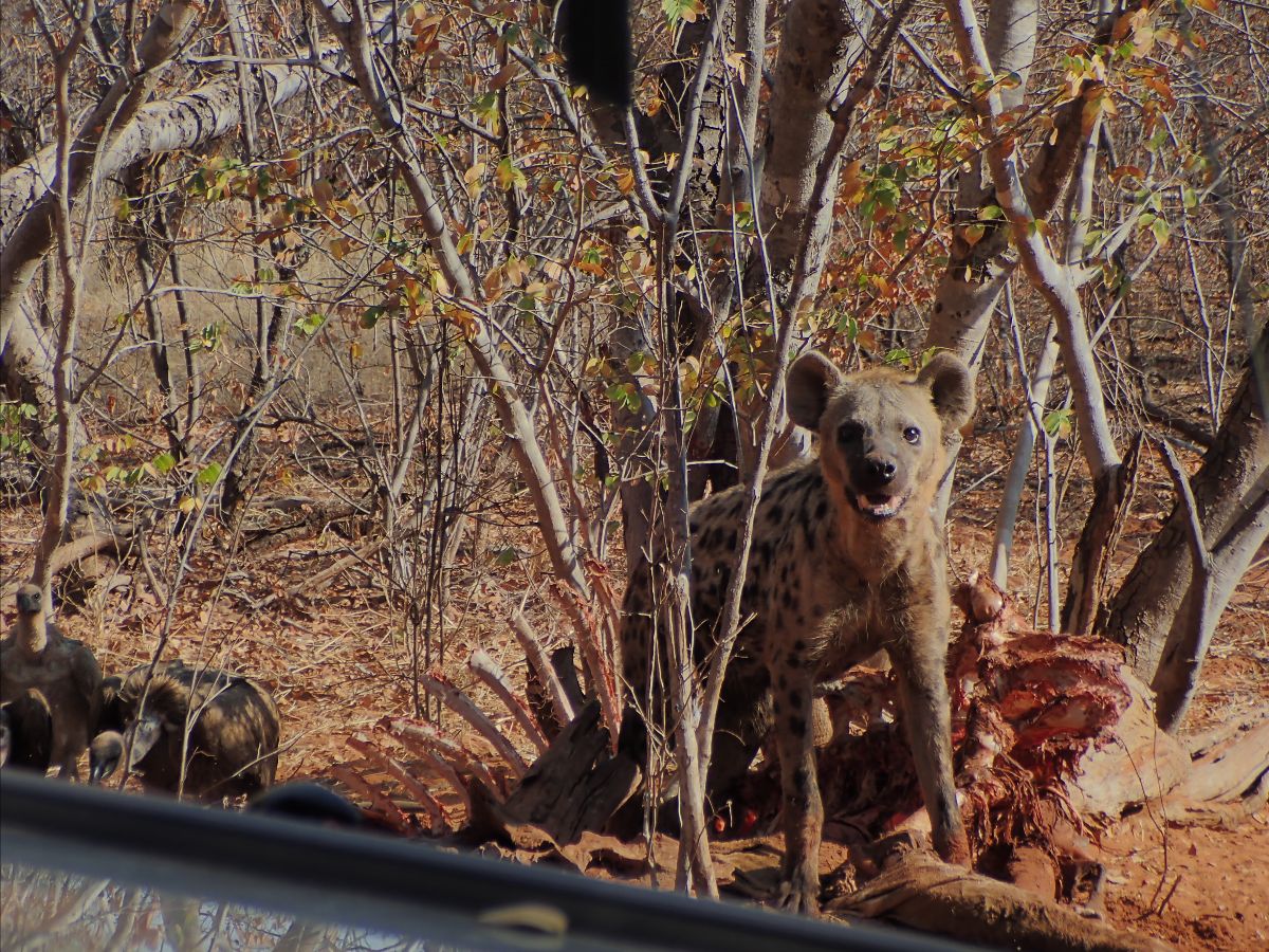 Again, as often during this world tour, we were very lucky and were among the first to see a three-week-old rhino baby. We also had the chance to stumble upon lions feasting on a freshly caught prey by the side of the road. Moreover, we were able to go back the next day to see the hyenas fighting over the carcass with the vultures. We enjoyed being able to take our time and get familiar with the geography and fauna of the reserve.
