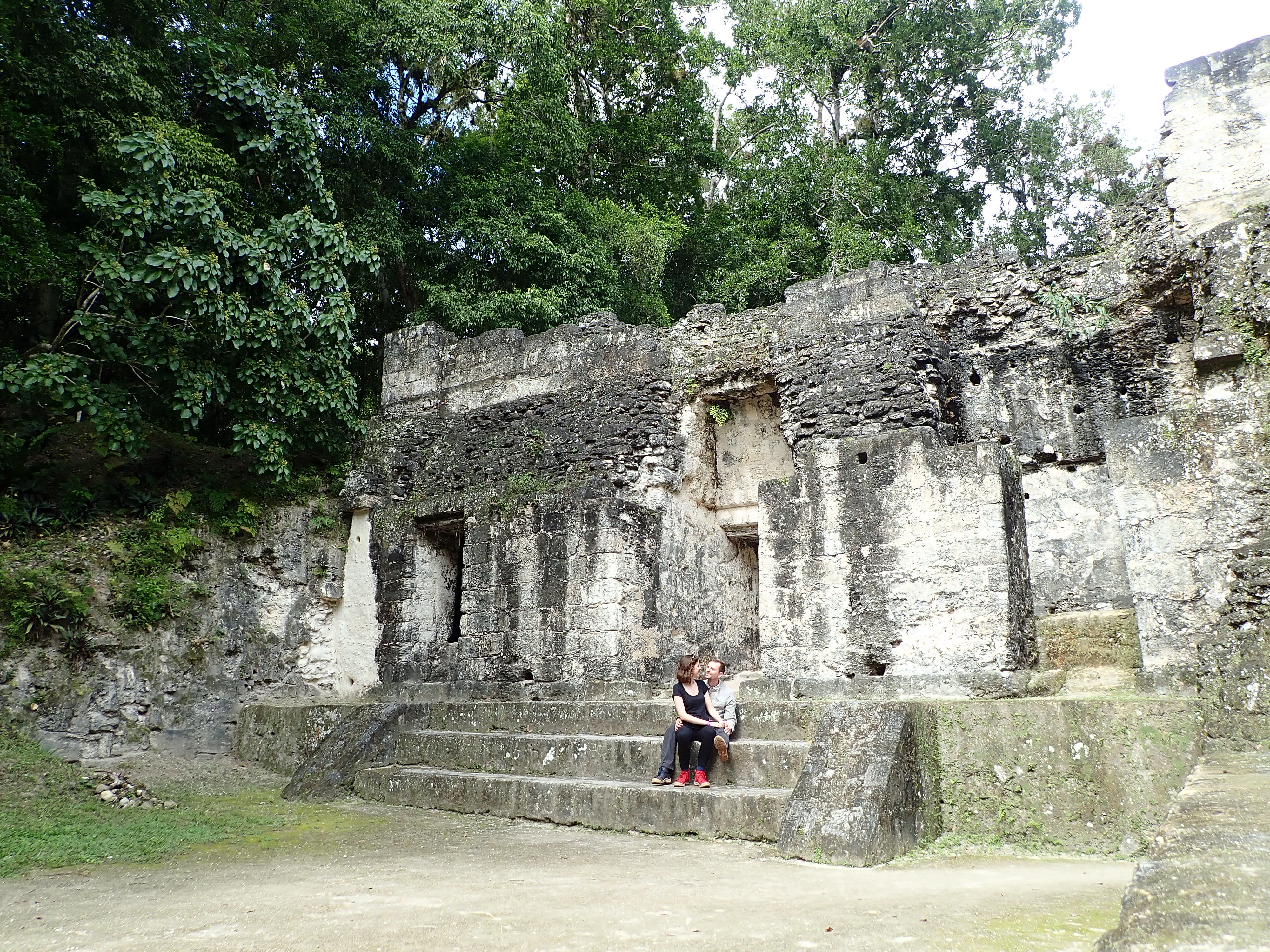 Après beaucoup de questionnements sur le casse-tête de notre itinéraire, nous avons décidé de descendre au Guatemala (seulement quelques heures en bus) et de quitter enfin l’Amérique du Nord pour l’Amérique Centrale. À peine la frontière traversée, nous remarquons le décalage entre le Mexique et le Guatemala. Une vingtaine de mètres derrière les bâtiments officiels mexicains, le poste de frontière Guatémaltèque est une cabane en bois avec un toit de taule et des cochons qui tournent autour. Nous nous rendons sur la charmante île de Flores (sur le lac de Petén), cependant nous décidons de loger à côté de l’île afin de faire des économies et parce que nous avons lu que l’île est très touristique et ne paraît pas authentique. Effectivement, de notre côté c’est bien plus chaotique et nous sommes surpris de croiser beaucoup de personnes publiquement armées. C’est l’occasion de prendre nos premiers tuk-tuks pour nous déplacer. Nous participons à une excursion pour aller visiter de bon matin les ruines de Tikal. La jungle se réveille sous nos yeux (les singes hurleurs, les oiseaux et nombreux insectes) alors que nous distinguons les premiers édifices de l’ancienne cité de Tikal. Tikal est une des plus impressionnantes citée maya déjà découverte (avis aux explorateurs il y a encore beaucoup à découvrir dans la région) et fût notamment le lieu de tournage de certaines scènes de Star Wars.