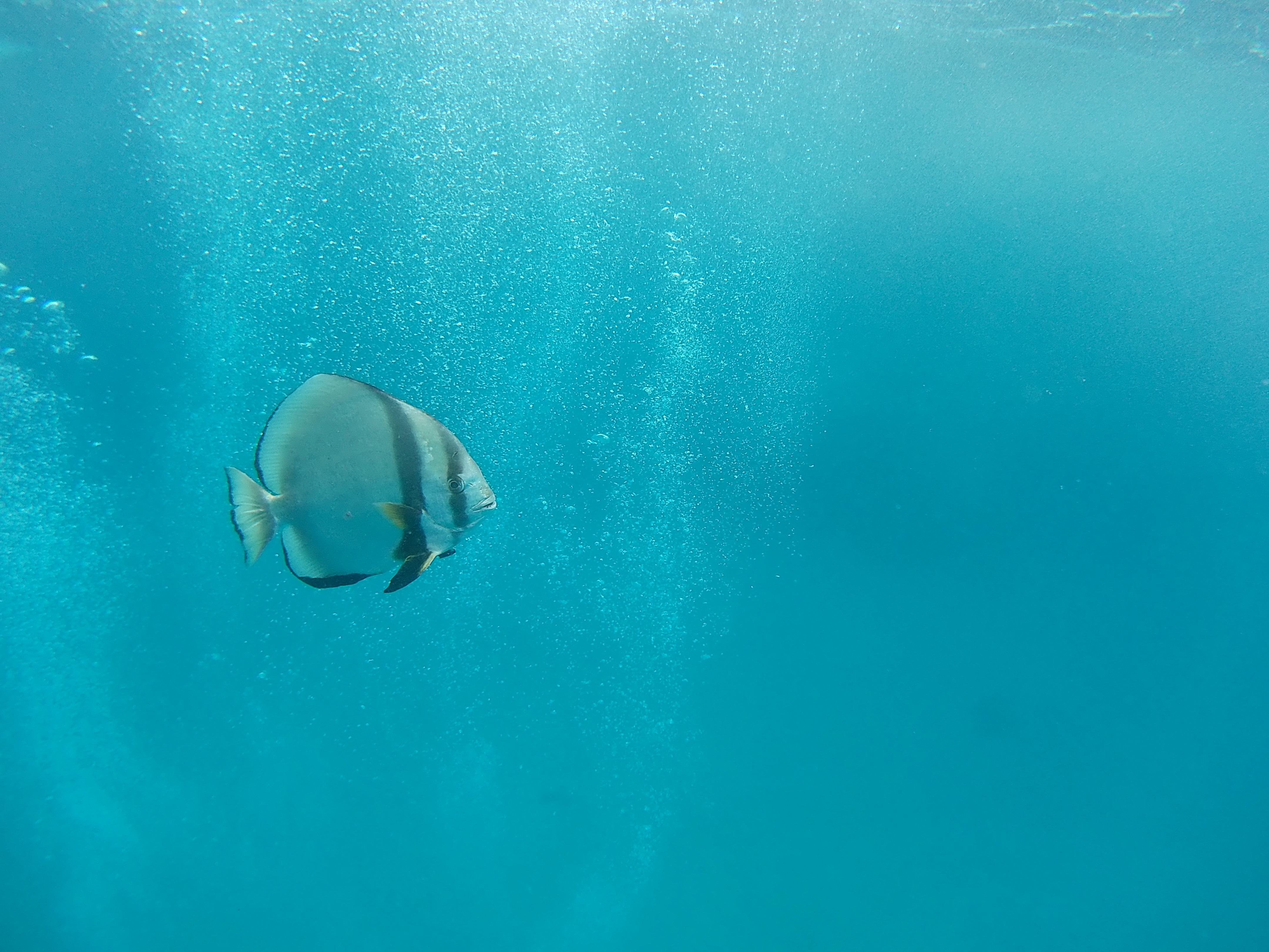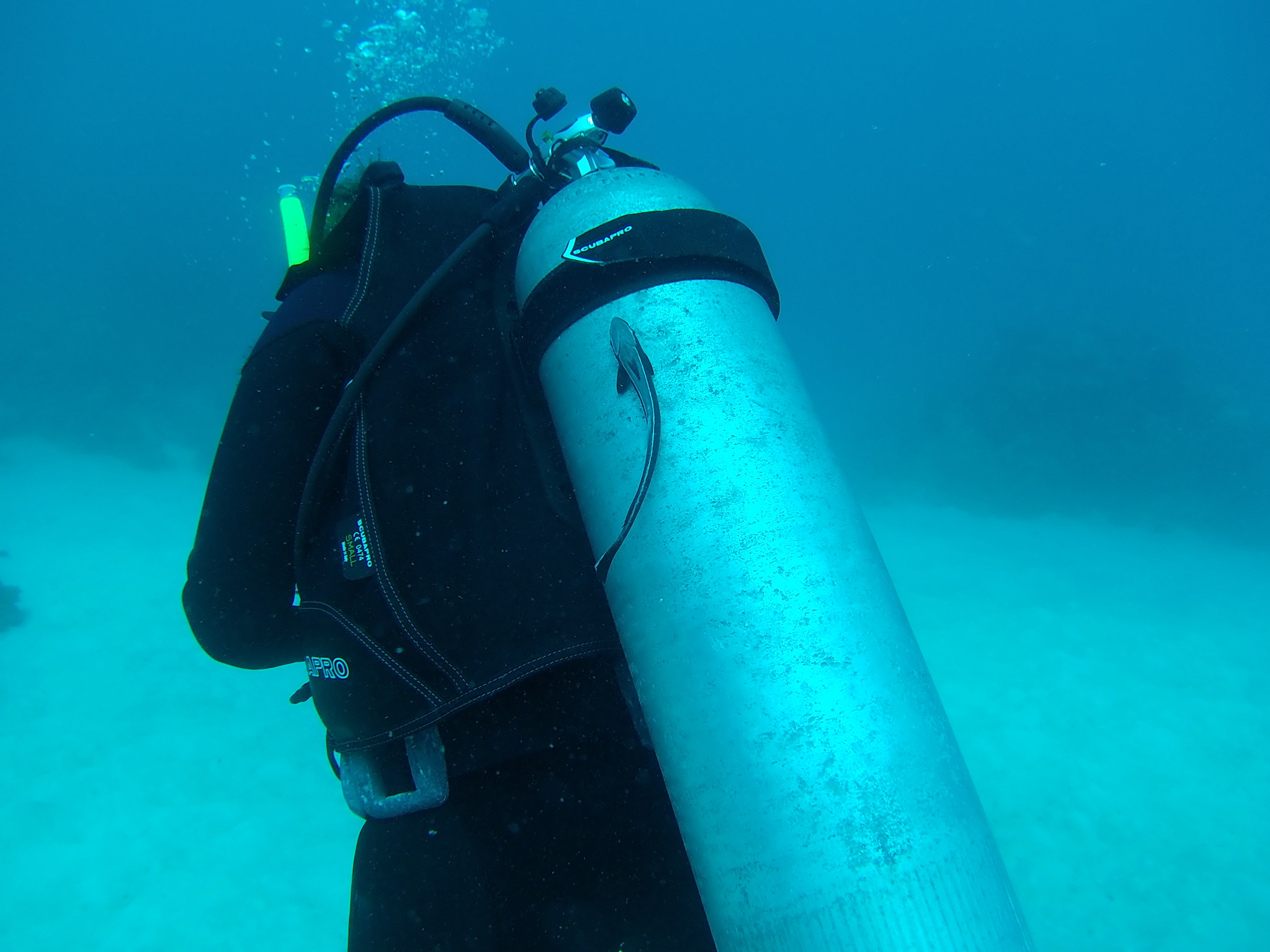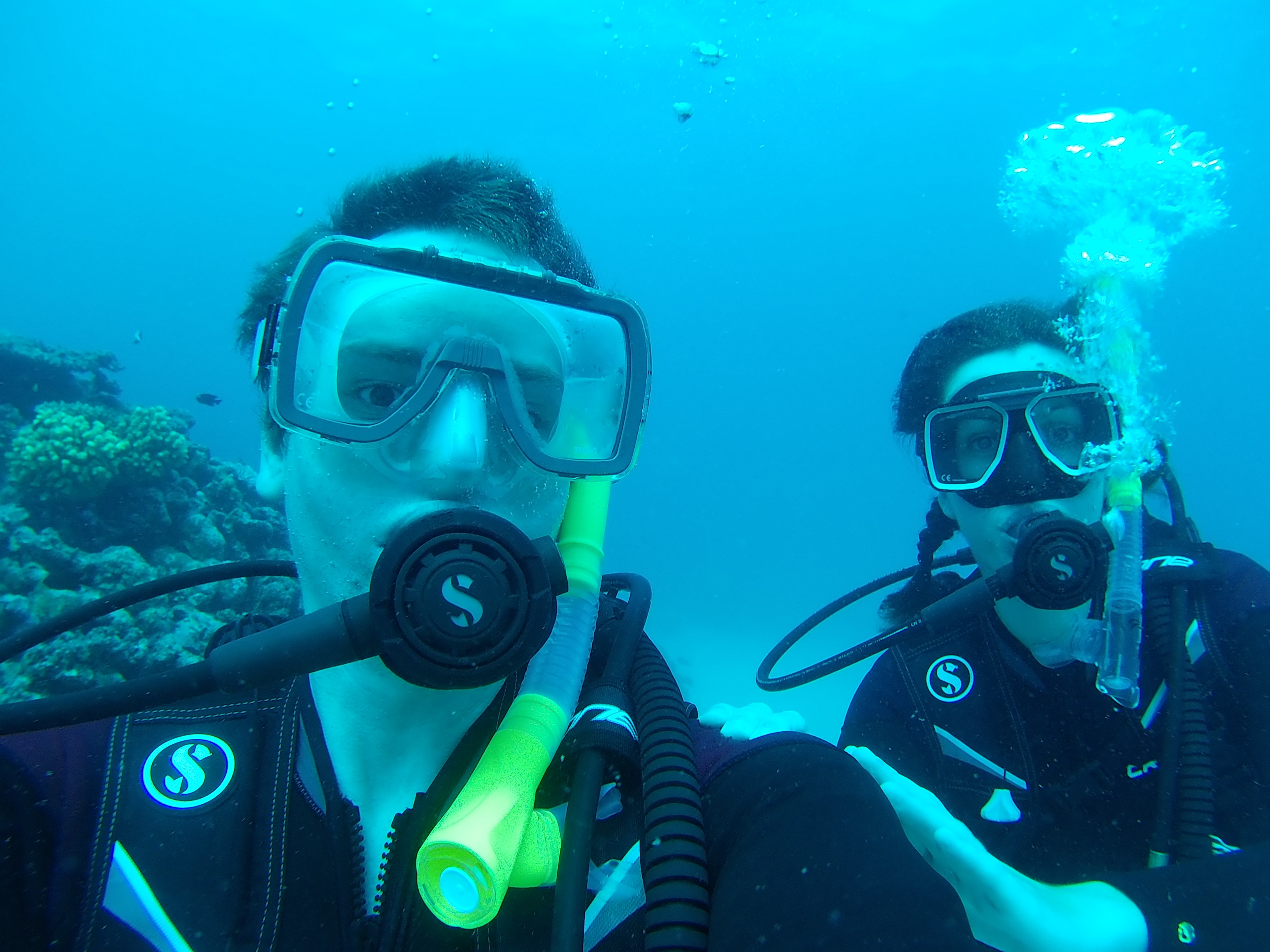 Enfin, nous avons pu pour la première (et unique fois du voyage) plonger en autonomie. Cela veut dire plonger juste tous les deux, sans guide. C’était possible grâce aux excellents briefings et à la surveillance sur le bateau des moniteurs. Par exemple, nous devions signer un registre avant de sauter dans l’eau et en ressortant. Ainsi, si nous avions dépassé notre temps limite nous savions que quelqu’un serait venu nous chercher. Aussi, si nous nous perdions nous avions la possibilité de remonter à la surface et un guide posté sur le bateau avec des jumelles aurait pu envoyer un petit bateau nous récupérer. Cette autonomie a aussi été possible, pour nous, car nous avons acquis plus de compétences en passant notre niveau supérieur : PADI Advanced.