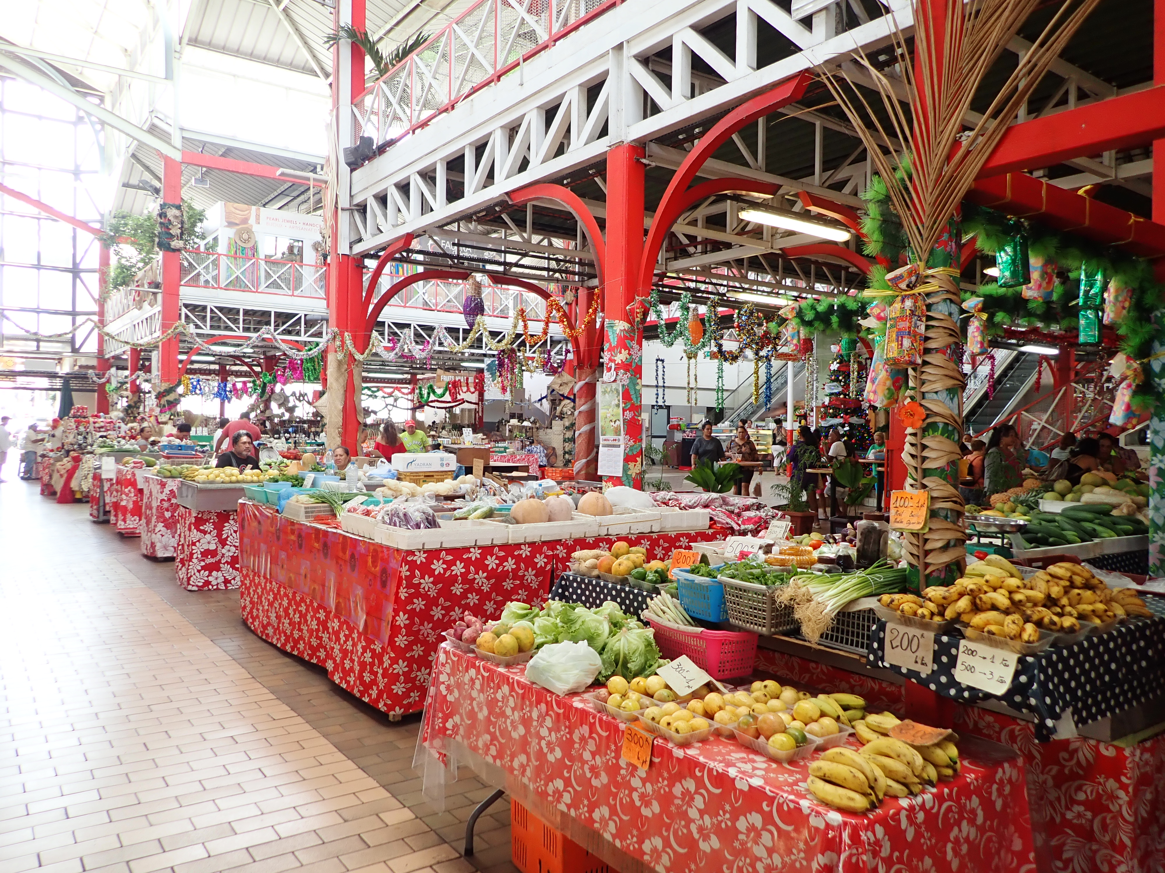 Premier-arrêt indispensable : le marché de Papeete ! Un marché coloré et plein d’arômes, recommandé tant pour des souvenirs à bons prix que pour prendre le déjeuner, acheter des fruits ou du poisson.