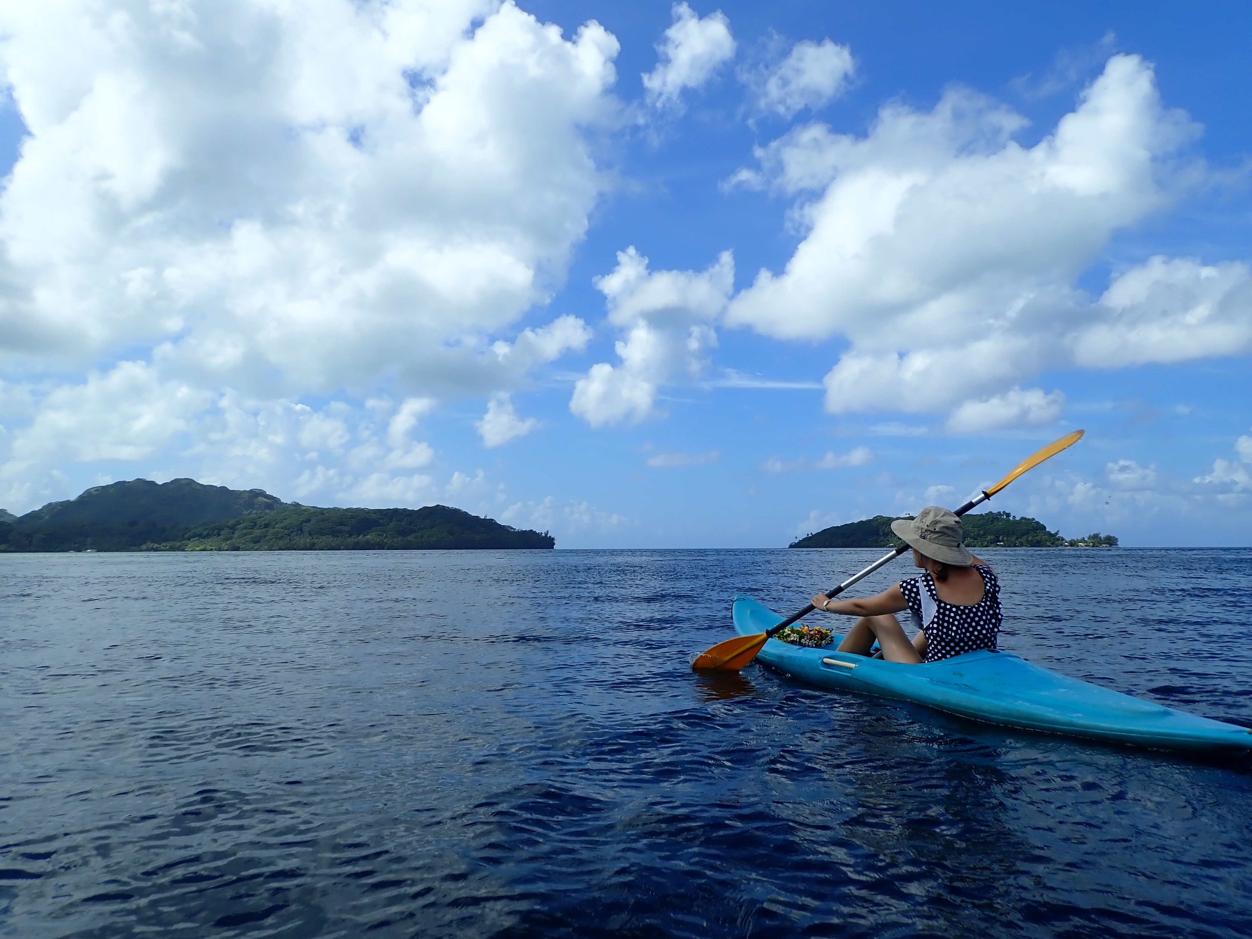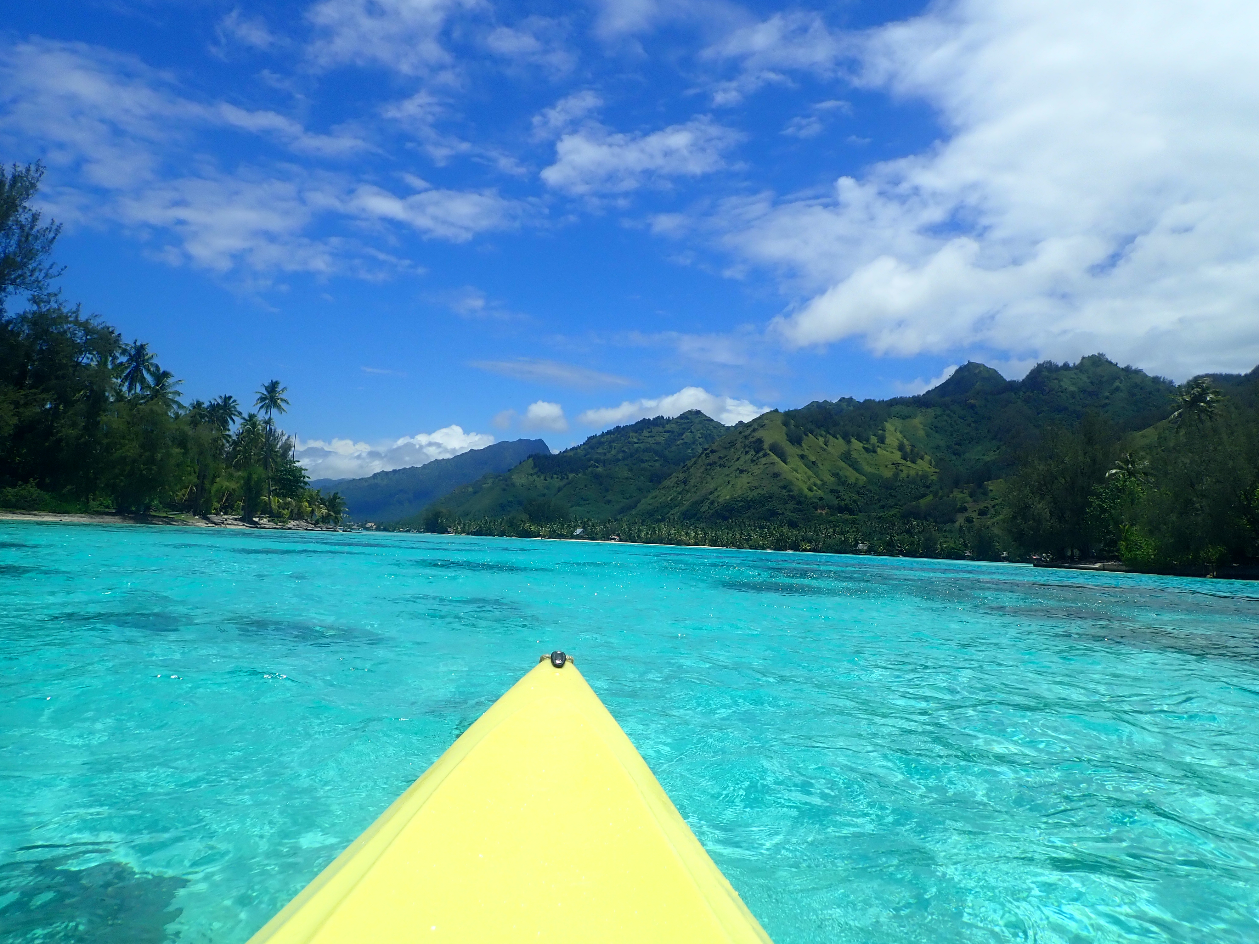 Le lendemain nous naviguons vers Bora-Bora après une courte baignade et un petit déjeuner. Nous nous laissons porter par les vents et sommes rejoints par un groupe de dauphins à notre arrivée à Bora-Bora. Le rêve ! Nous prenons les kayaks pour explorer les alentours.