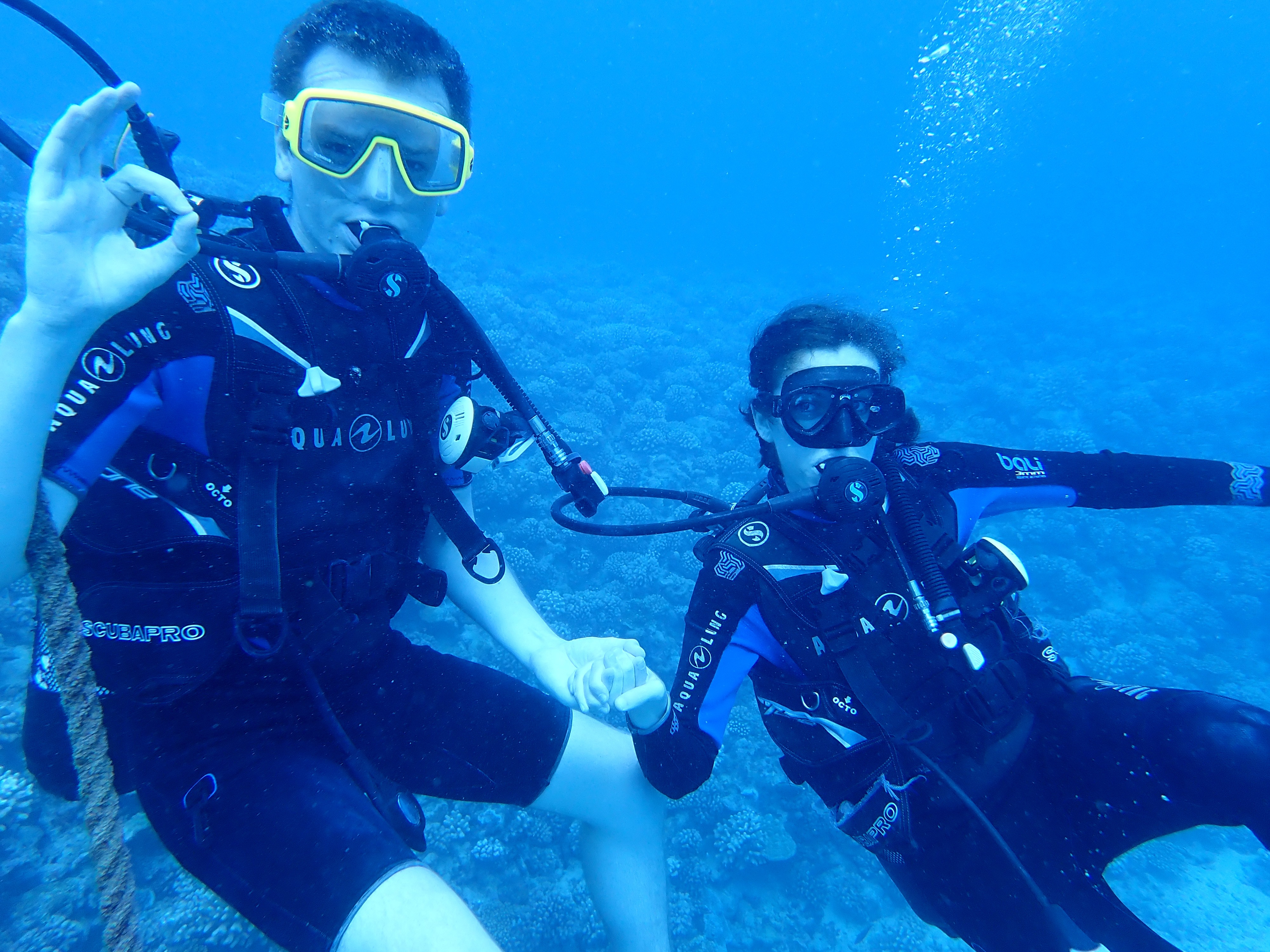 Les alentours de Moorea sont très propices à de superbes plongées. Nous avons effectué une double plongée avec Moorea Blue Diving. Notre première plongée était au spot Mamaru où nous avons vu des requins citrons et des requins à pointes noires. Nous avons effectué une deuxième plongée à Coral Wall où nous avons observé des tortues de près se reposer et se faire laver la carapace par les poissons. Nous avons aussi croisé quelques requins. Très chanceux, nous avons aussi vu des dauphins entre les 2 plongées lors de notre halte dans la baie de ‘Opunohu. Pour bénéficier de 10% de réduction lors de votre plongée avec Moorea Blue Diving, citez notre blog « Voyage de Miel » lors de votre réservation avec Diane ou Stéphane.