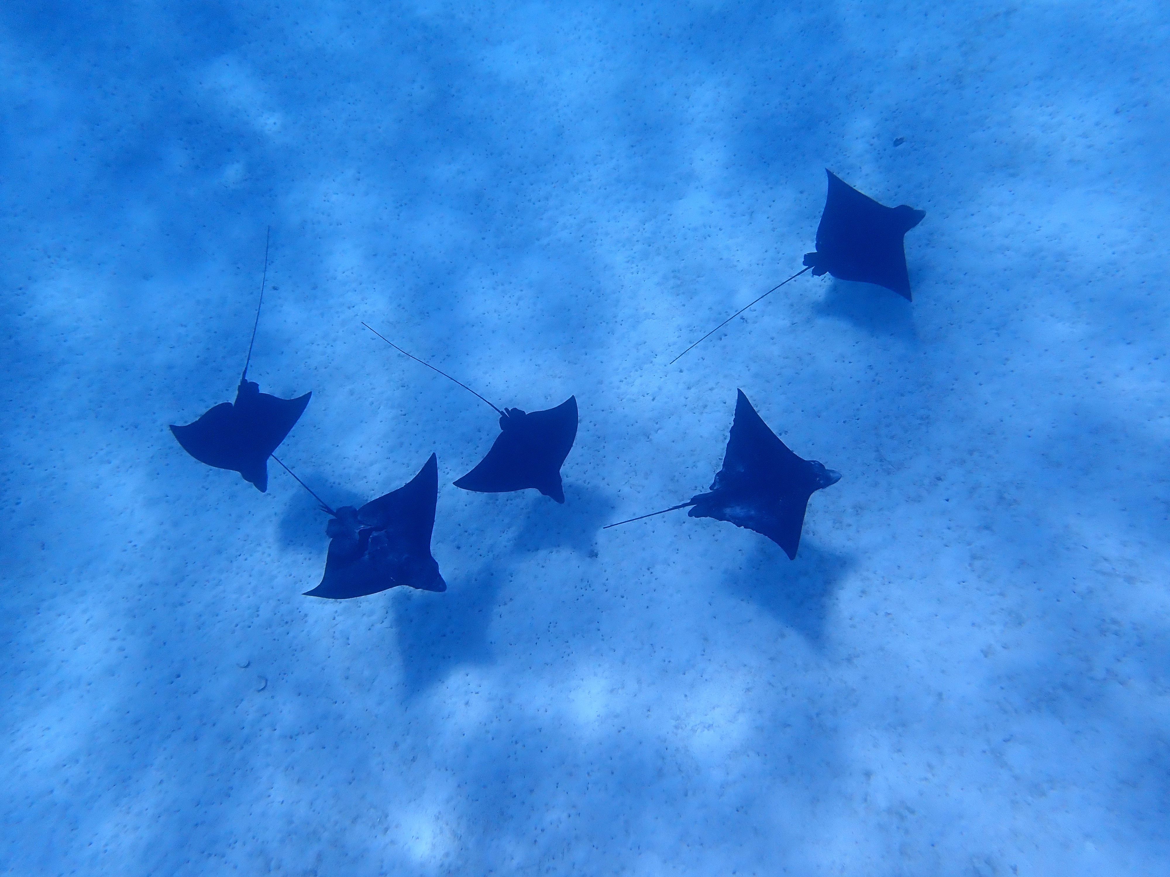 Nous avons cependant effectué une plongée avec Eleuthera Bora Diving Center et eu la chance d’observer un banc de 40 à 50 raies léopards (aussi appelées raies aigles). C’était magique de les voir voler/nager gracieusement au-dessus de nous. Il est aussi possible, selon votre niveau de plongé et les conditions climatiques, d’observer des raies mantas à Bora-Bora. Eleuthera a organisé pour que l’on vienne nous chercher à notre hôtel et l’ambiance était excellente au club.