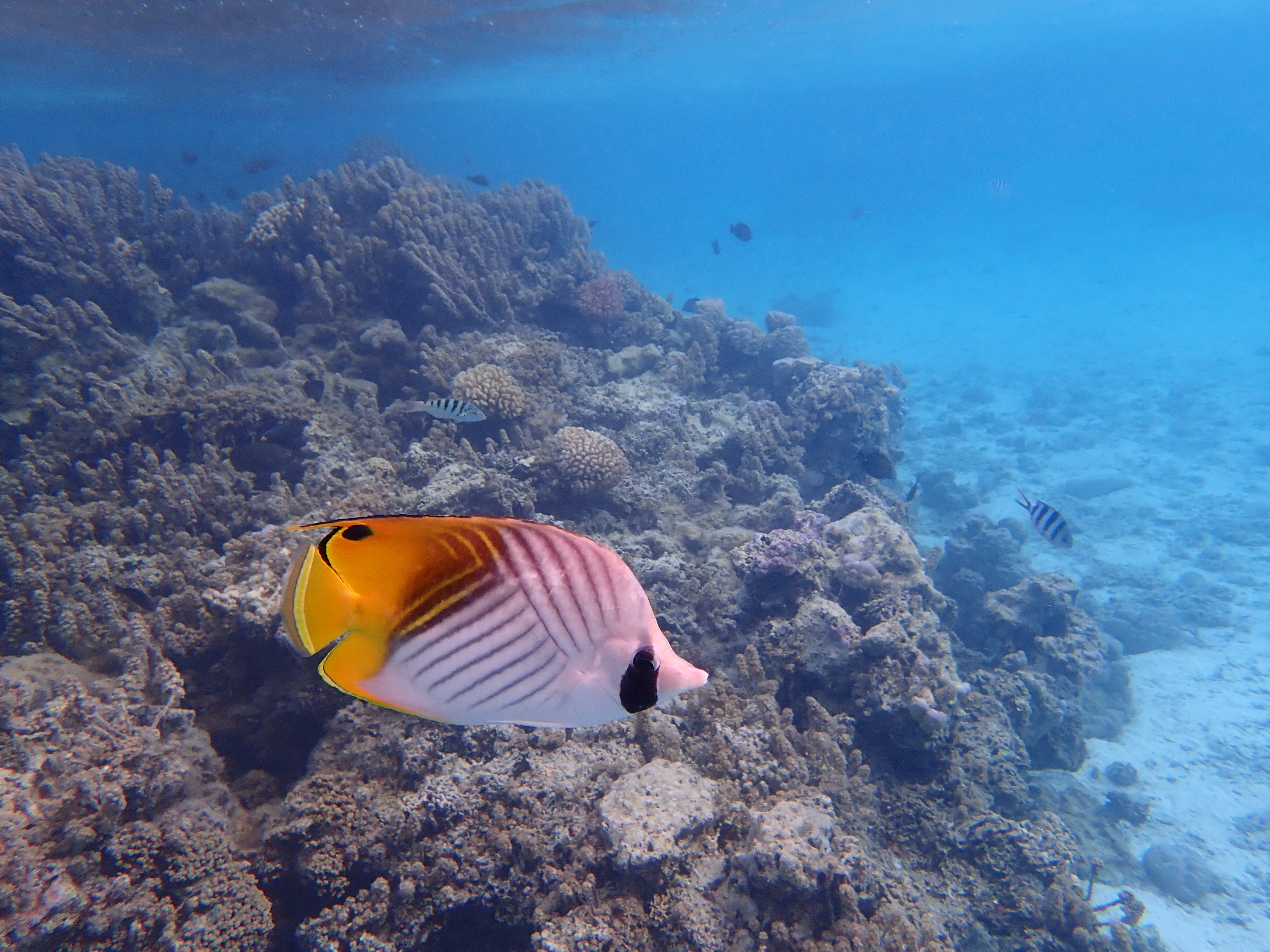 Nous avons fait du snorkel à partir de la plage de l’Hibiscus et de la plage publique de Ta’ahiamanu. Le matériel fût prêté par notre hôtel (comme c’est souvent le cas) ou il est possible d’en acheter dans la plupart des magasins que vous croiserez.
