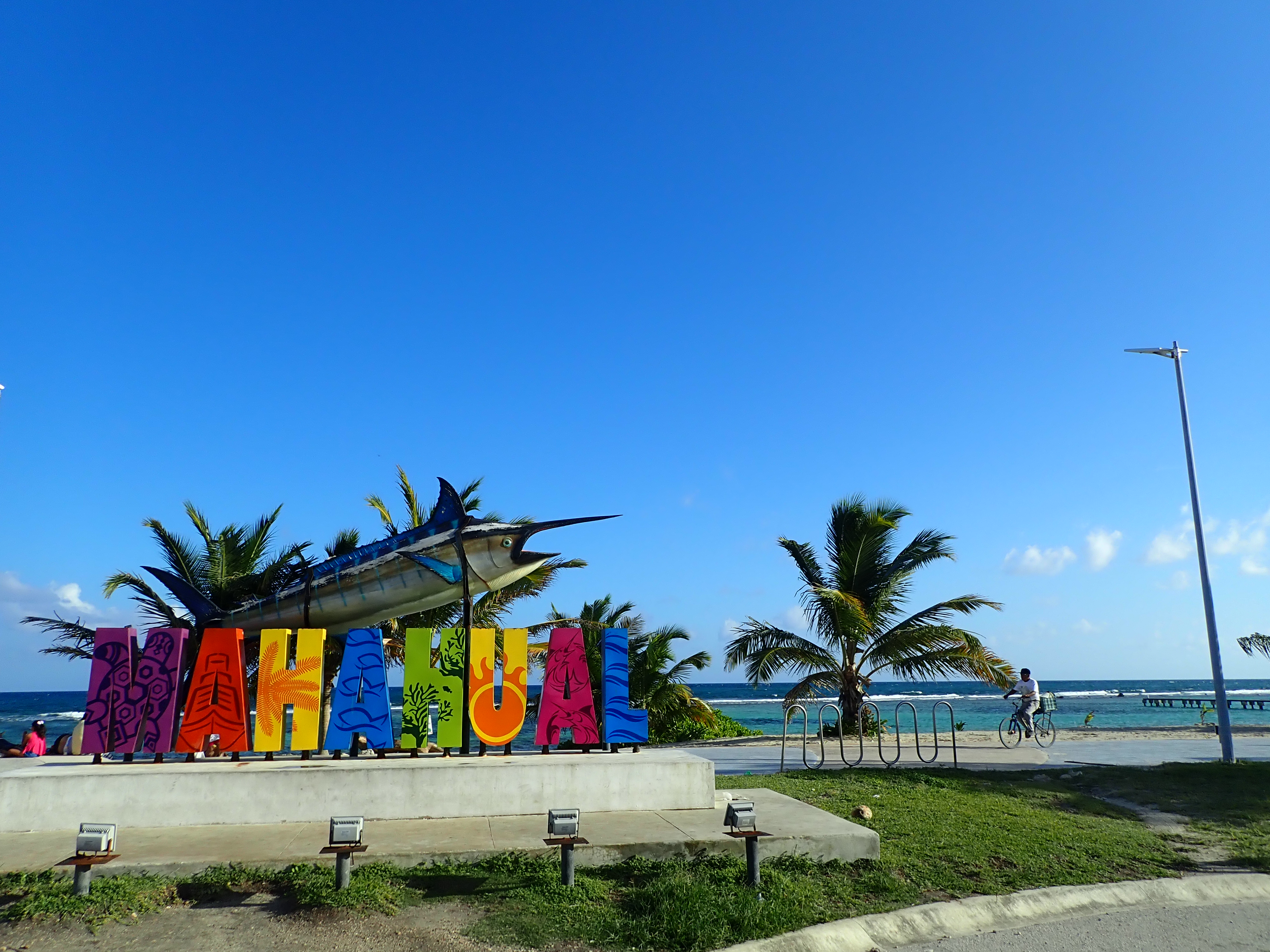 Pour aller de Bacalar à Mahahual nous avons pris un mini bus ADO. Nous avons adoré le petit village de Mahahual (ou Mahajual), un ancien village de pêcheurs qui s’est vu transformé le jour où les bateaux de croisières ont commencés à s’y amarrer. Pas de craintes cependant, les bateaux de s’y arrêtent que quelques heures et la plupart des passagers ne sortent pas du port. Vous en croiserez peut-être sur la rue principale qui borde la plage mais jamais dans le cœur du village. Ils ne nous ont pas empêchés de profiter de ce lieu aux airs de paradis perdu.